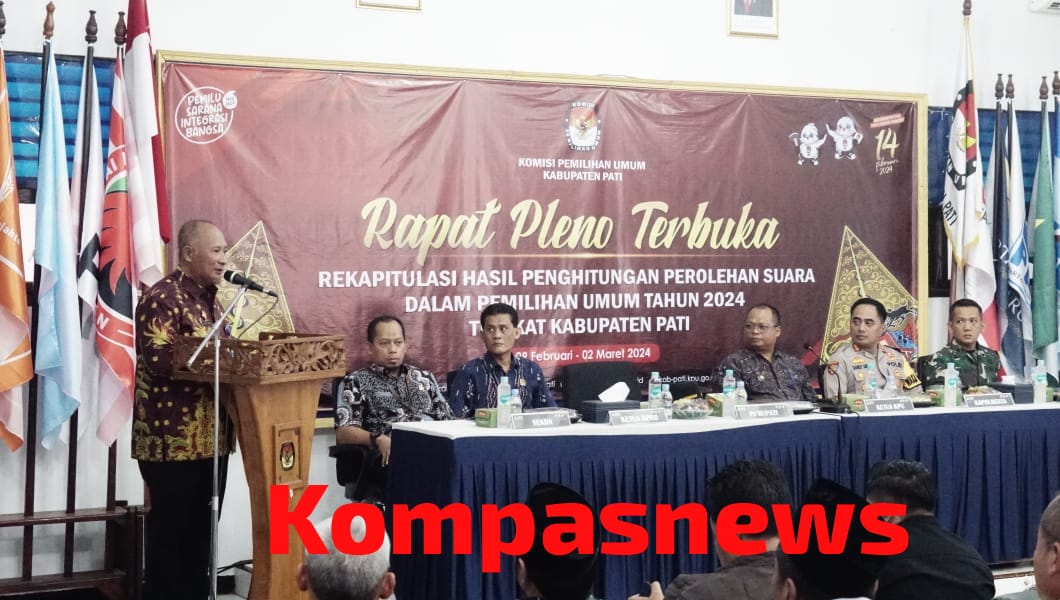 Rapat pleno rekapitulasi hasil suara Pemilu 2024 di Kabupaten Pati akan berlangsung selama 4 hari, dari tanggal 29 Februari hingga 2 Maret 2024.pungkasnya ( wwhyu )