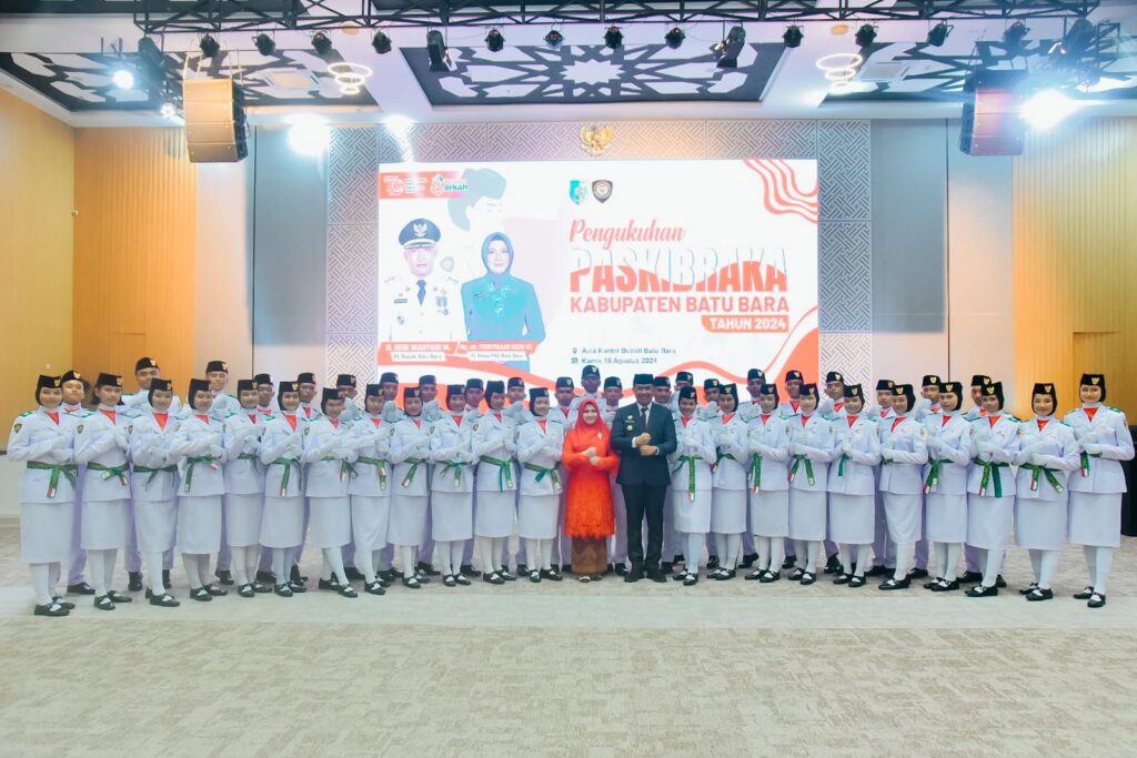 Turut hadir Kapolres Batu Bara AKBP Taufik Hidayat Thayeb, unsur Forkopimda, Sekda Norma Deli Siregar, para Kepala OPD, serta para orang tua anggota Paskibraka.