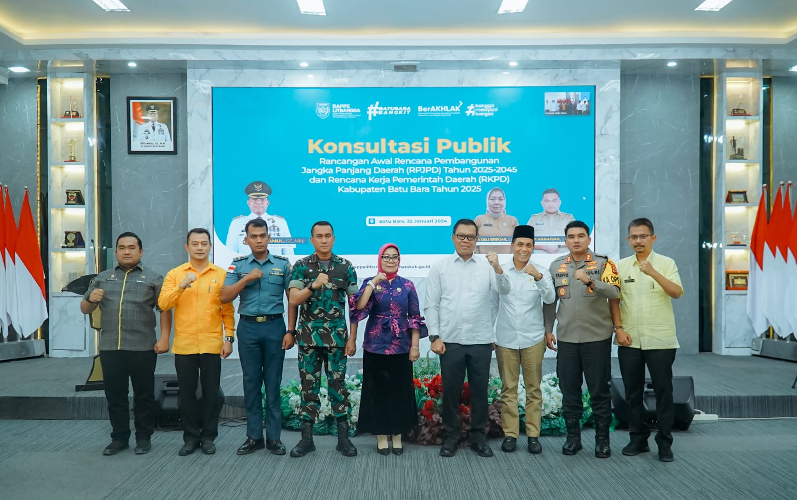 Kompasnews.co.id- Sumatera Utara, Batu Bara- Penjabat (Pj) Bupati Batu Bara Nizhamul, S.E, M.M., membuka forum konsultasi publik rancangan awal Rencana Kerja Pemerintah Daerah (RKPD) Kabupaten Batu Bara tahun 2025 dan Rencana Pembangunan Jangka Panjang Daerah (RPJPD) Kabupaten Batu Bara tahun 2025-2045 di Aula Rumah Dinas Bupati Batu Bara, Komplek Inalum, Tanjung Gading, Kecamatan Sei Suka, Kamis, 25/01/2024.