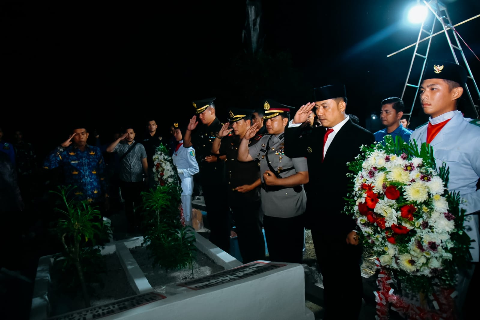“Malam ini, bersama Kapolres Batu Bara, Danyon 126 Kalacakti, Danlantamal dan Kajari Batu Bara, kami melakukan ziarah untuk mengenang jasa para pahlawan dan pejuang kemerdekaan di Kabupaten Batu Bara,” ujar Pj. Bupati Heri Wahyudi.