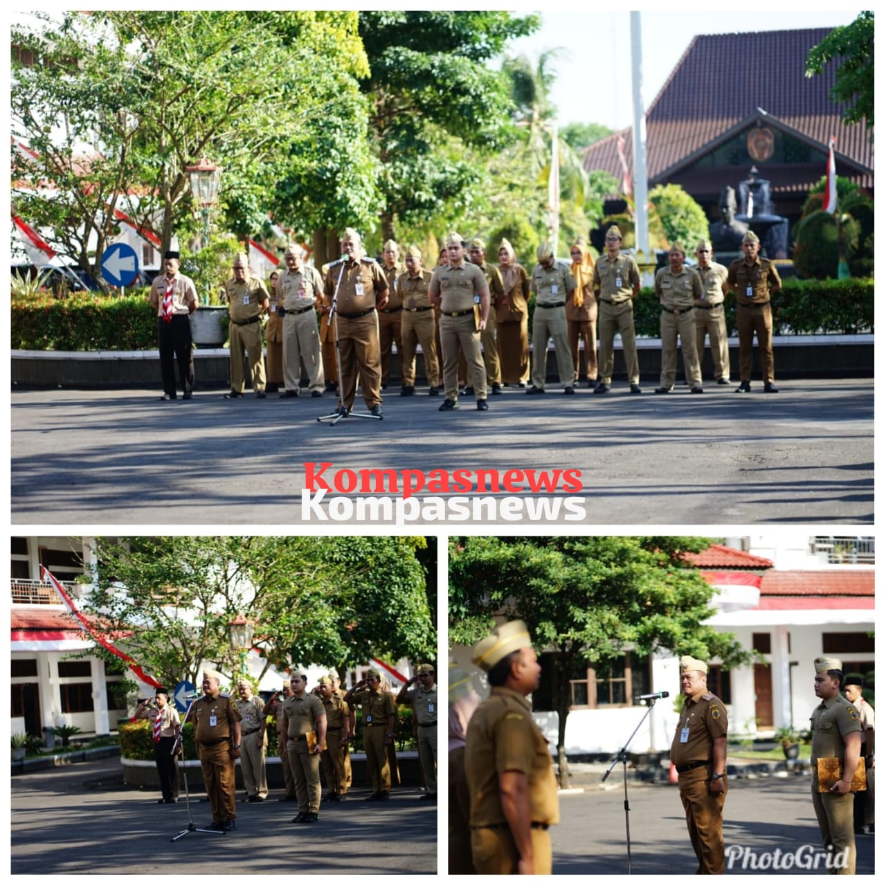 Penjabat (Pj) Bupati Pati, Sujarwanto Dwiatmoko, memimpin apel perdana di Sekretariat Daerah Kabupaten Pati, Senin (26/8).