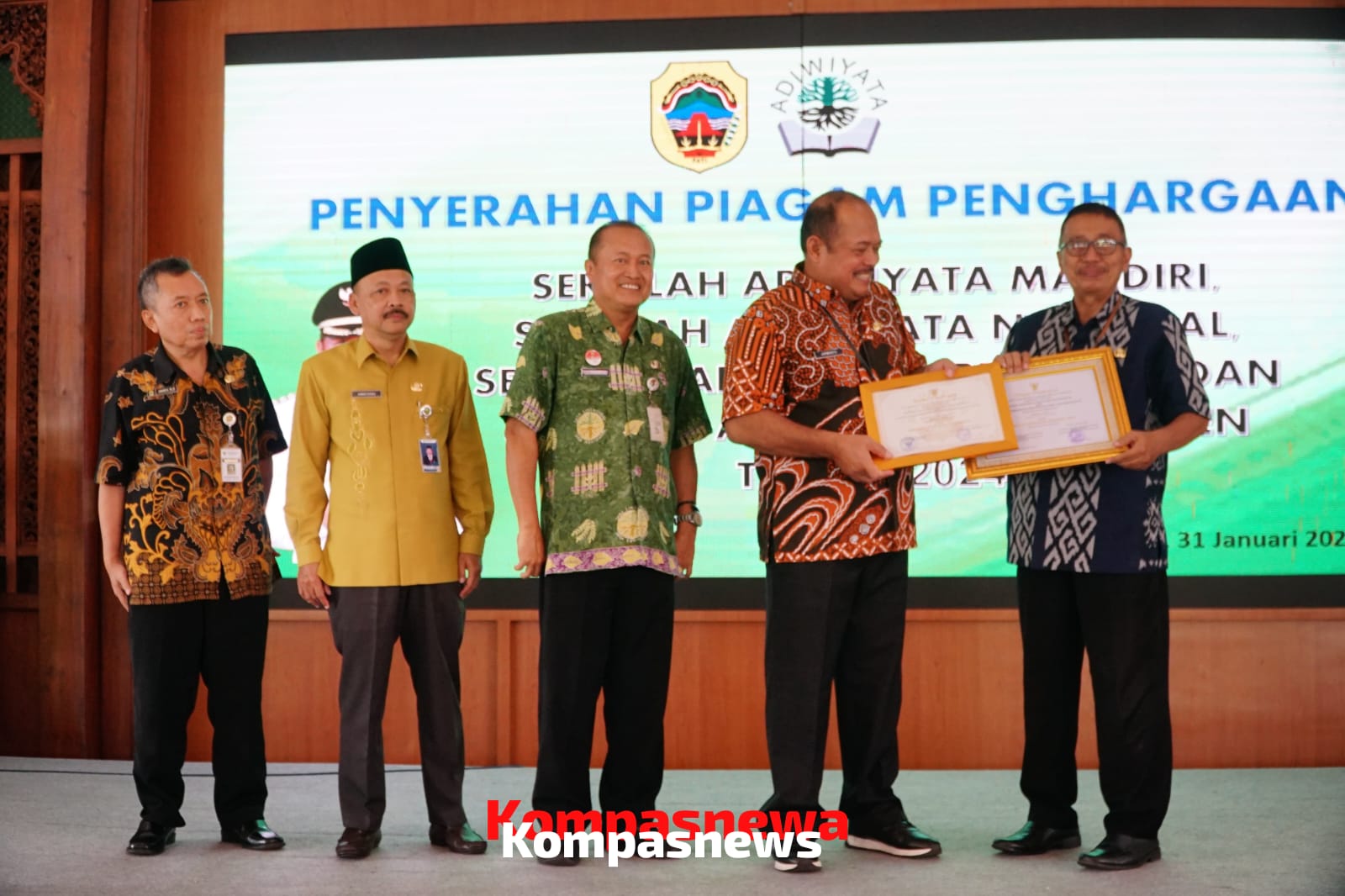 Pj Bupati Pati, Sujarwanto Dwiatmoko, Jumat (31/1), menghadiri acara penyerahan piagam penghargaan Sekolah Adiwiyata yang dilaksanakan di Pendopo Kabupaten Pati.