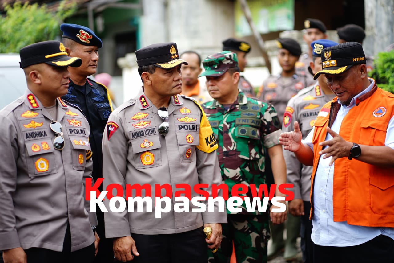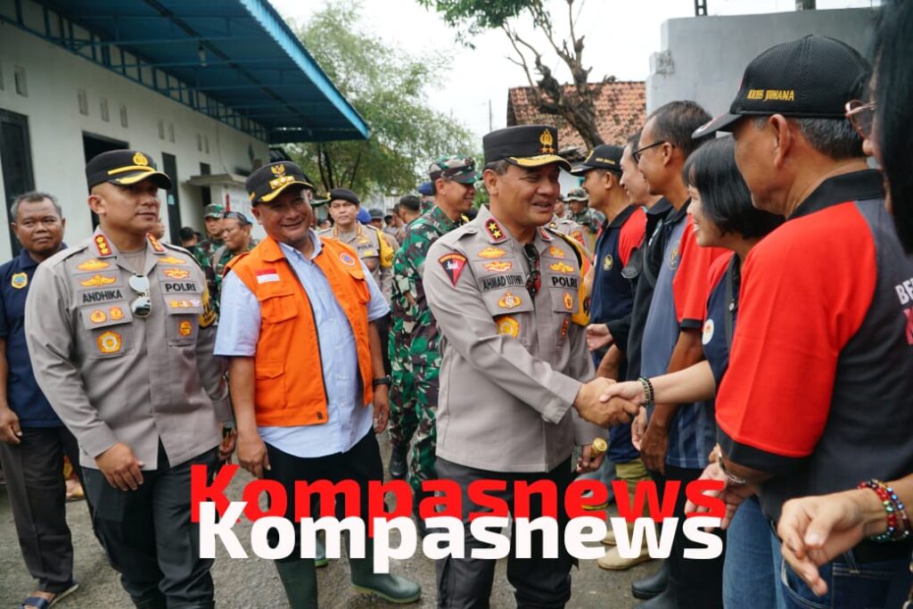 Pj Bupati Pati Henggar Budi Anggoro bersama Forkopimda Pati dan Sekretaris Daerah Kabupaten Pati, Minggu (17/3) mendampingi Kapolda Jateng dan Pangdam IV Diponegoro untuk meninjau bencana banjir di desa Doropayung Kecamatan Juwana.