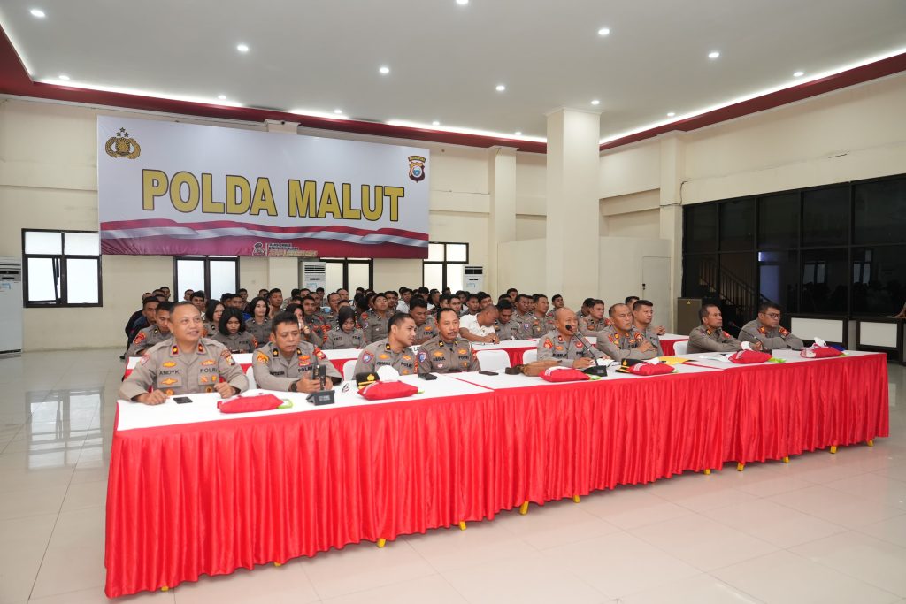 Dalam sambutannya, Kapolda Maluku Utara Brigjen Pol. Drs. Waris Agono, M.Si., yang dibacakan oleh Plt. Karo Ops, menekankan pentingnya profesionalisme dalam menjaga keamanan menjelang Lebaran.