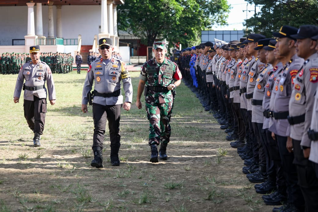 Wakapolda Maluku Utara, Brigjen Pol Stephen M. Napiun, S.I.K., S.H., M.Hum., yang mewakili Kapolda Malut, bersama Danrem 152/Babullah Brigjen Inf. Enoh Solehudin, S.E., memimpin langsung apel gelar pasukan tersebut.Hadir pula jajaran Forkopimda Provinsi Malut, Kabinda Maluku Utara, pejabat utama Polda Maluku Utara,peserta apel yang terdiri dari personel gabungan TNI, Polri, dan instansi terkait.