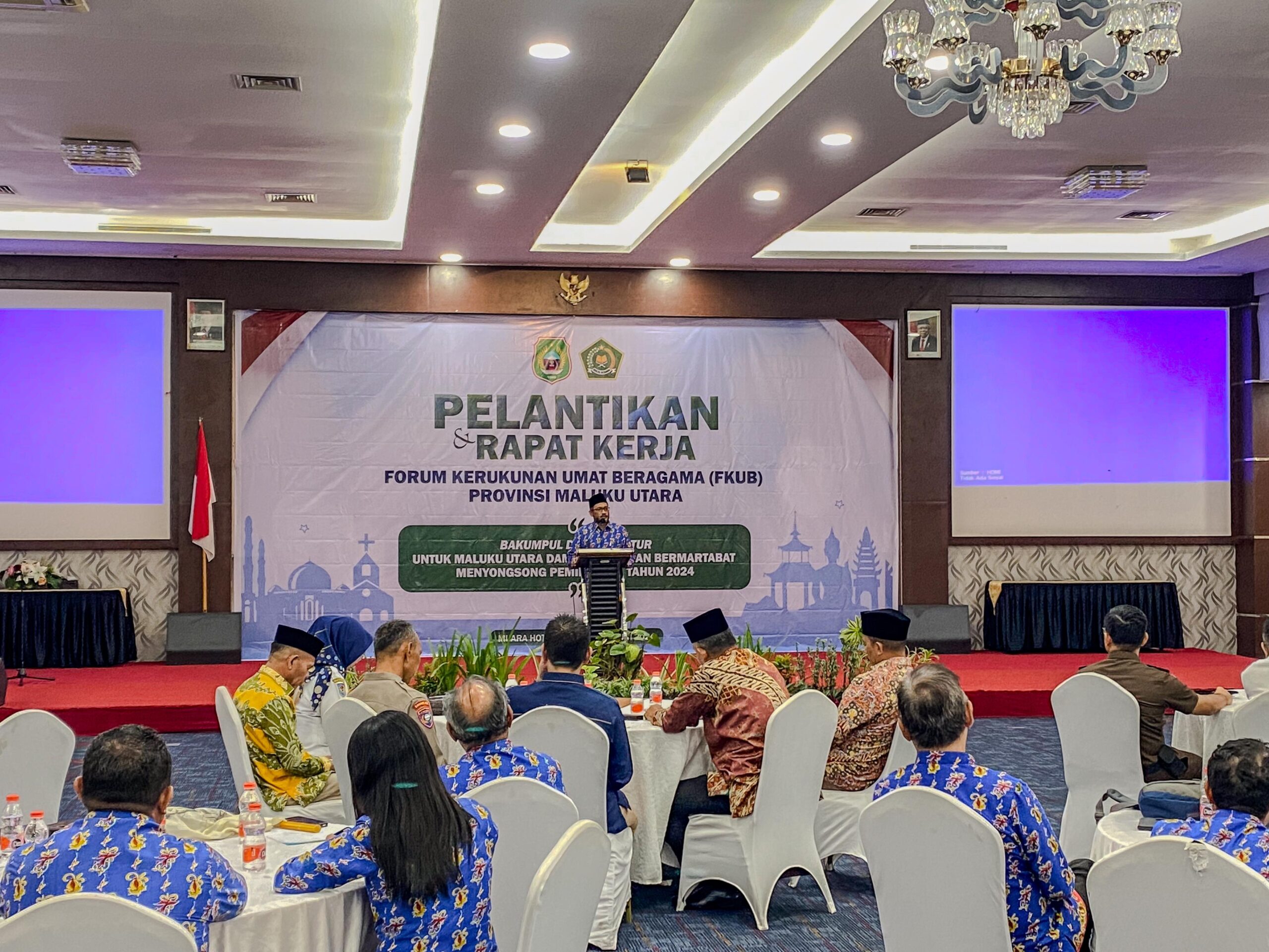 Ternate, Maluku Utara – Dir Binmas Polda Malut melalui Kompol Latuwo, S.H., M.M., mewakili Kapolda Malut menghadiri acara pelantikan pengurus Forum Kerukunan Umat Beragama (FKUB) Provinsi Maluku Utara. Acara ini berlangsung pada Rabu, (5/06 2024) di Ballroom lantai 6 Muara Hotel Ternate.