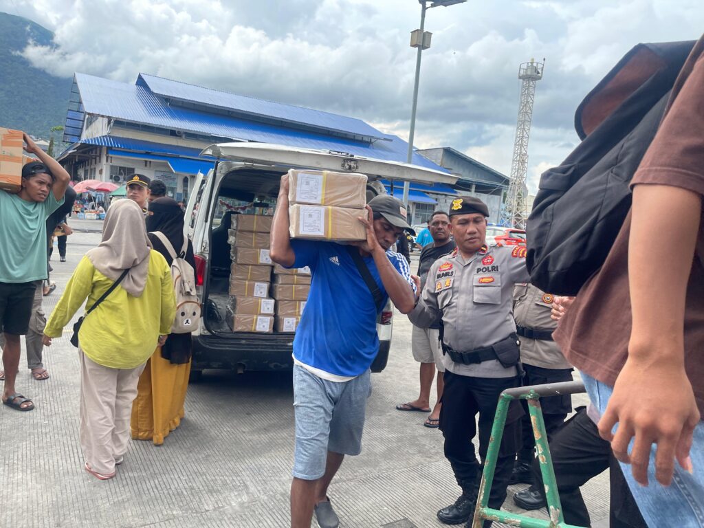 Personel Operasi Mantap Praja Kieraha 2024 Polda Malut kembali melaksanakan pengamanan distribusi surat suara. pengamanan dilakukan dari Gudang Ekspedisi King Express yang berlokasi di Kelurahan Mangga Dua, Kecamatan Ternate, menuju Pelabuhan Ahmad Yani Ternate, pada Rabu (16/10/2024).