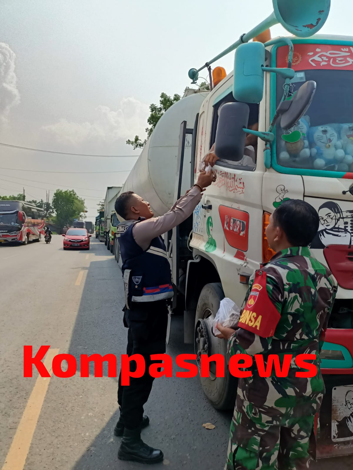 “Di sela-sela kejenuhan para sopir yang terjebak macet, polisi bersama warga membagi-bagikan nasi bungkus dan air mineral kepada mereka”, tuturnya.