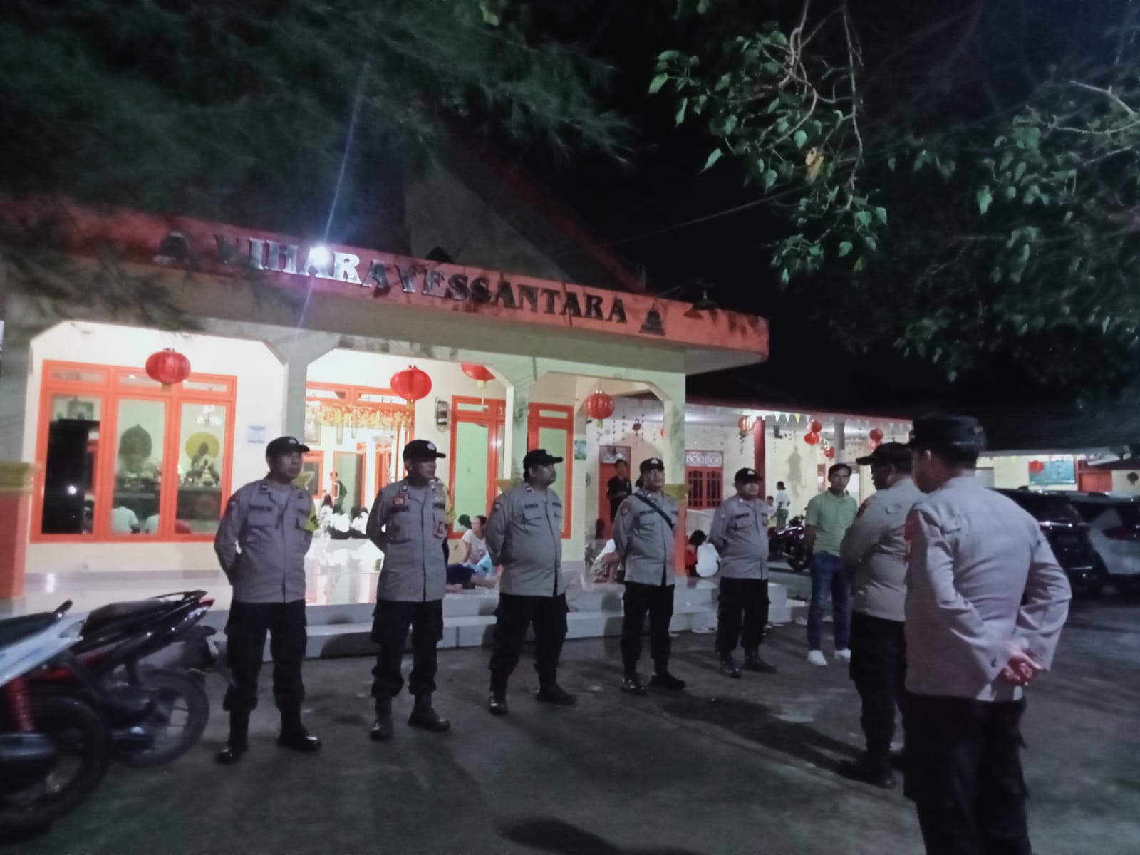 Polisi memastikan perayaan Waisak berjalan lancar dan aman, AKP Hotma Sitompul bersama anggotanya melaksanakan pengamanan hingga melakukan patroli secara berkala disekitaran lokasi tempat beribadah umat Budha dari awal kegiatan berlangsung hingga usai