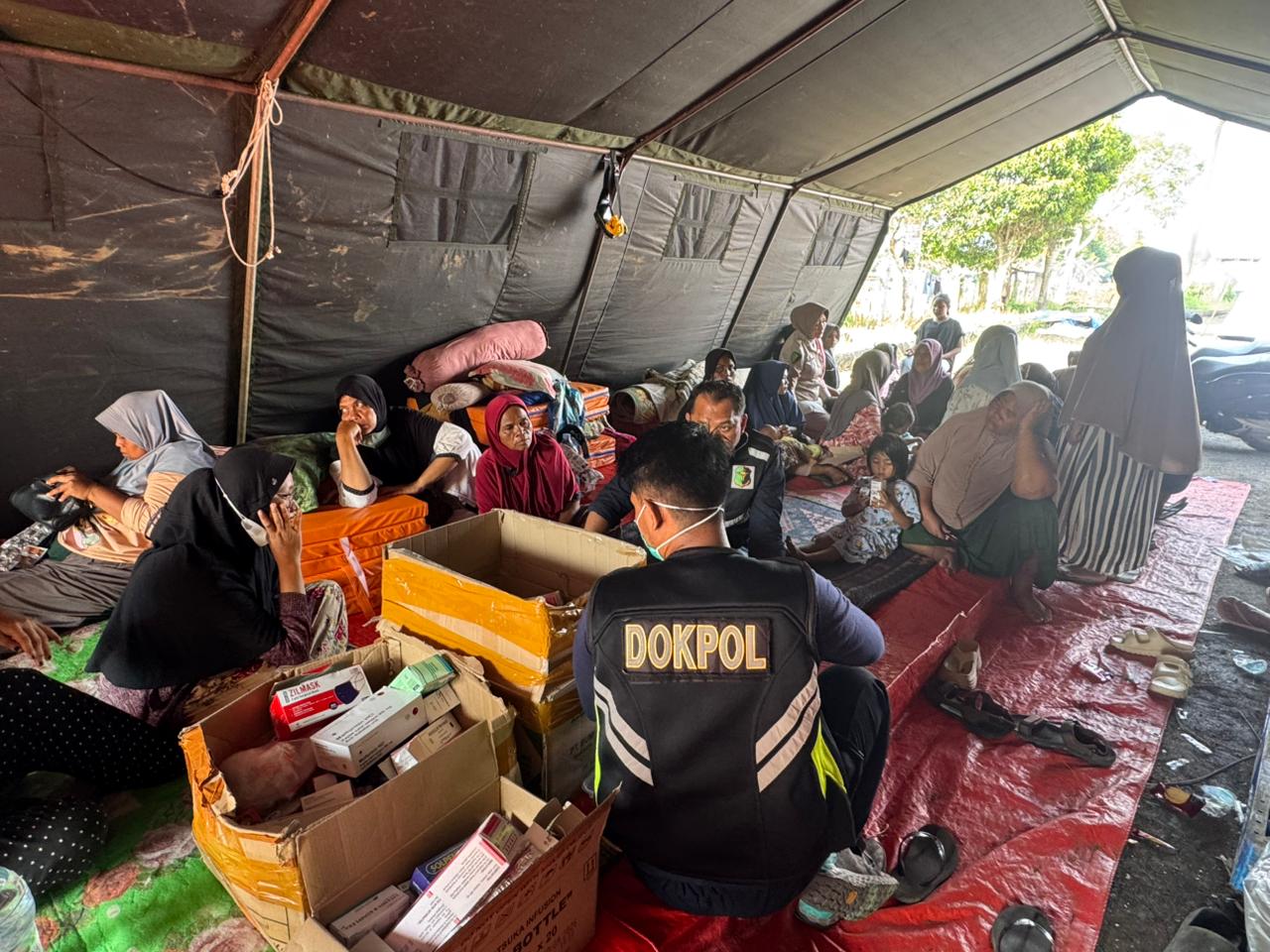 Kegiatan yang dimulai sejak pukul 08.30 WIB tersebut menyasar para pengungsi, khususnya kelompok rentan seperti ibu hamil, anak-anak, dan lanjut usia. Petugas kesehatan melakukan pemeriksaan umum, konsultasi medis, serta pemberian obat-obatan sesuai keluhan para pengungsi.