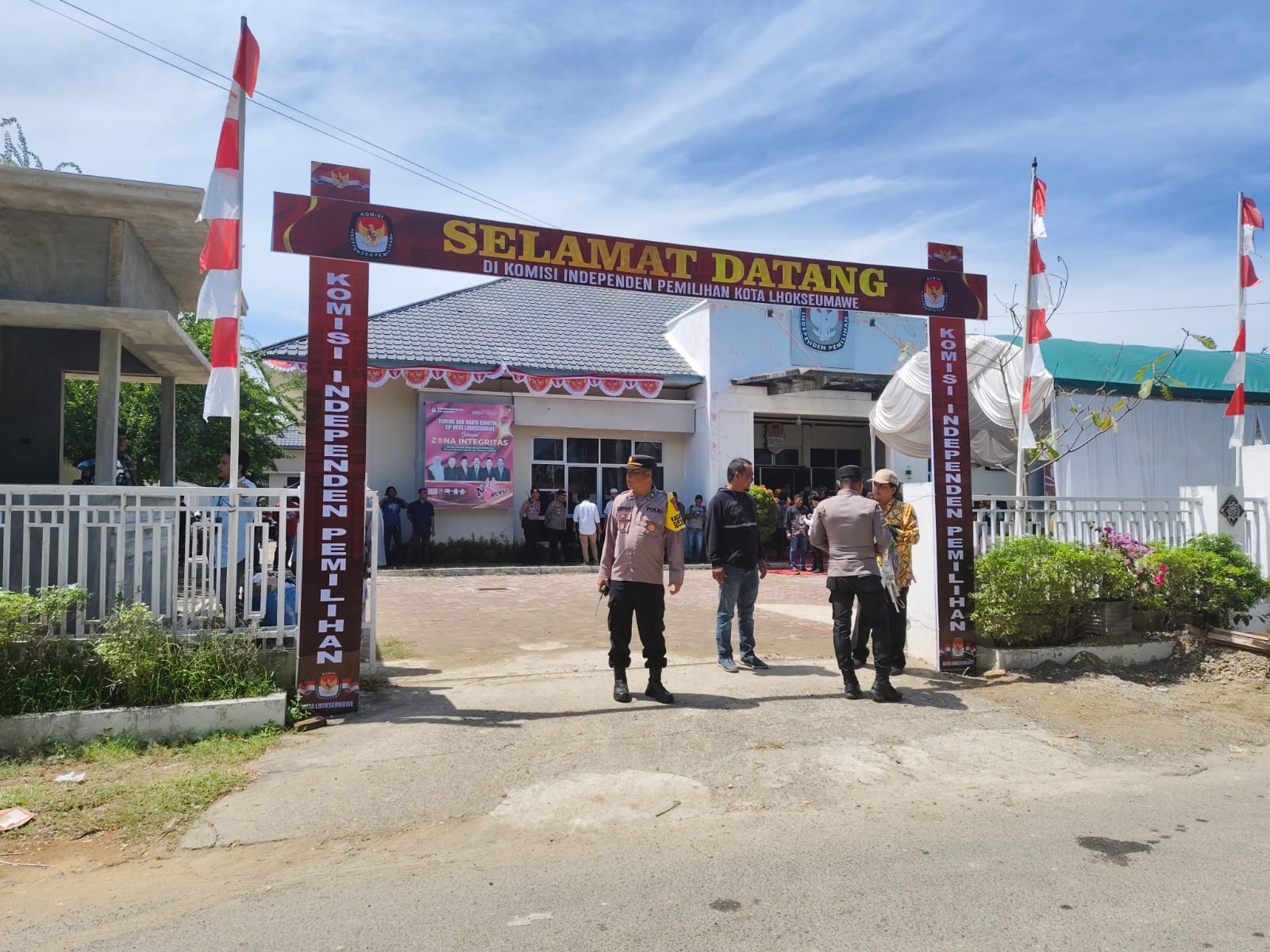 ID – Polres Lhokseumawe mengerahkan personel untuk melakukan pengamanan dalam proses pendaftaran pasangan calon (Paslon) Walikota dan Wakil Walikota Lhokseumawe. Kegiatan tersebut dilakukan di Kantor Komisi Independen Pemilihan (KIP) Kota Lhokseumawe, Jalan Ibrahim Agoeng, Desa Uteunkot, Kecamatan Muara Dua, Kota Lhokseumawe, Kamis (29/8/2024) pagi.