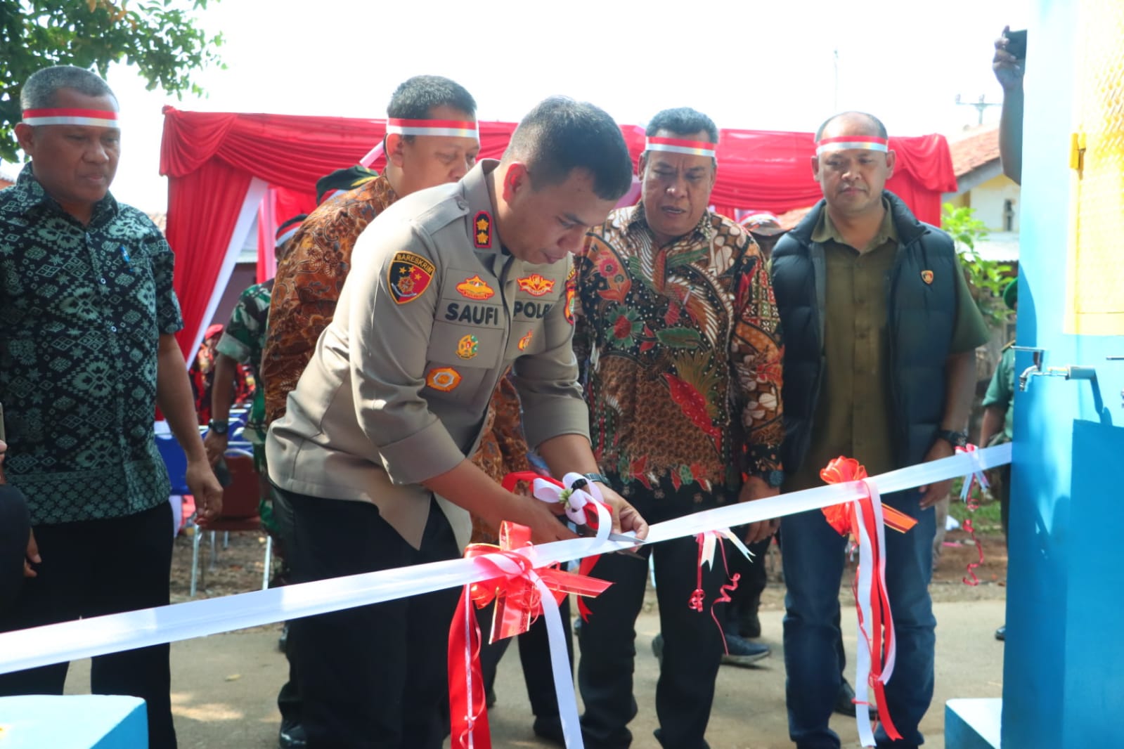 Kabupaten Bekasi – Dalam rangka memperingati Hari Bhayangkara ke-78, Wakapolres Metro Bekasi, AKBP Saufi Salamun, meresmikan pengadaan fasilitas air bersih berupa sumur bor di Kampung Tonjong, Desa Sukaragam, Kec Serang Baru, Kab Bekasi, Kamis (27/6/24).