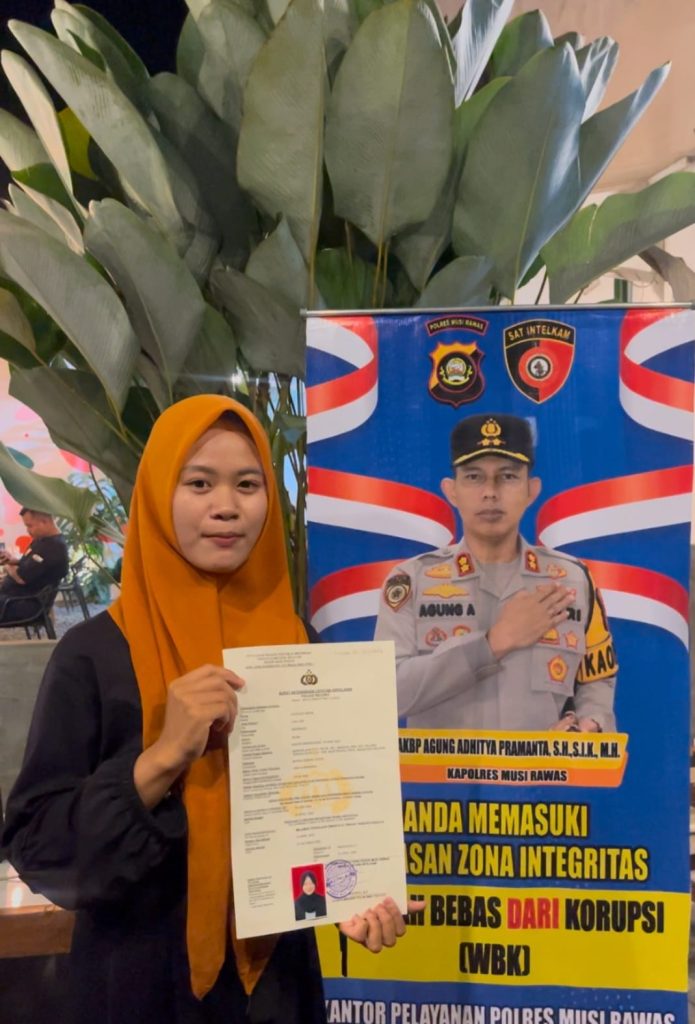 Guna meningkatkan pelayanan secara kongkrit kepada masyarakat, Polres Musi Rawas membuat terobosan kreatif dengan memberikan pelayanan extraordinary terkait pembuatan Surat Keterangan Catatan Kepolisian (SKCK) di malam hari.