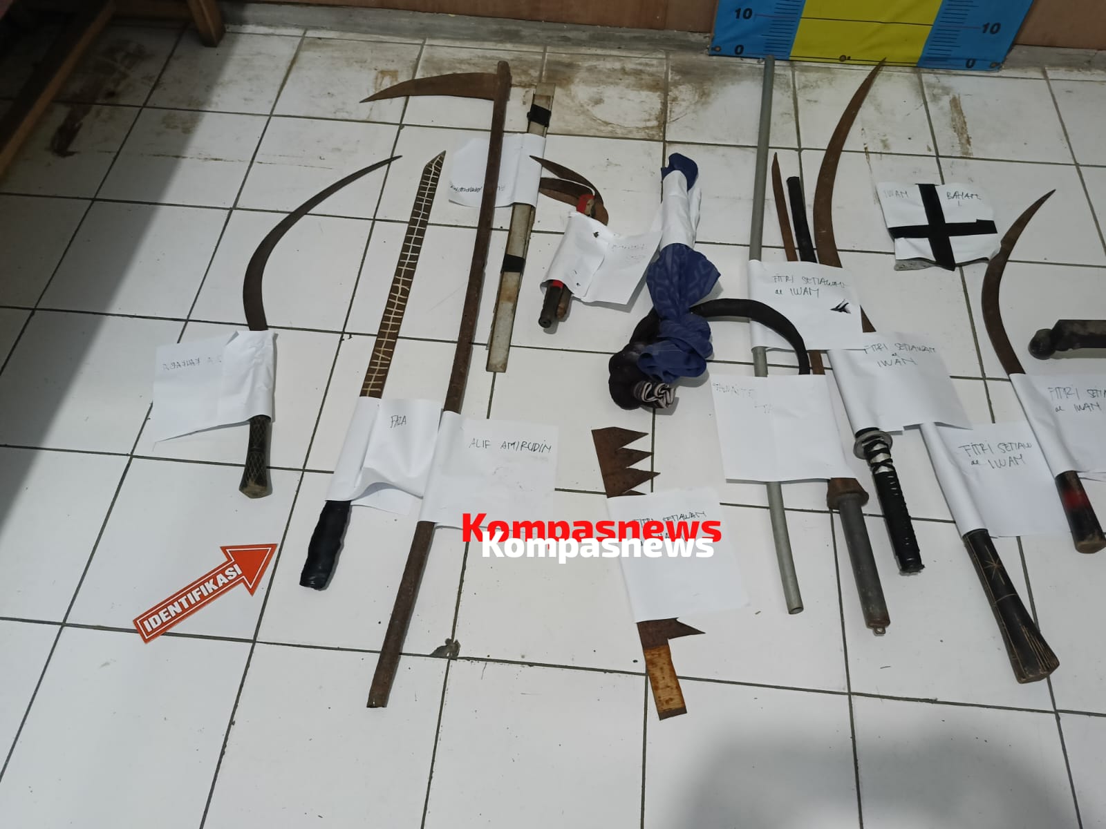 Setelah dilakukan interogasi, polisi mendapatkan informasi bahwa beberapa rumah remaja tersebut dijadikan tempat penyimpanan senjata tajam. Polisi kemudian melakukan penggeledahan di rumah-rumah tersebut dan menemukan berbagai jenis senjata tajam, seperti celurit, pedang, samurai, dan gergaji es batu. Selain itu, polisi juga menyita sebotol minuman keras jenis arak dan tujuh butir pil koplo berlogo “Y”.