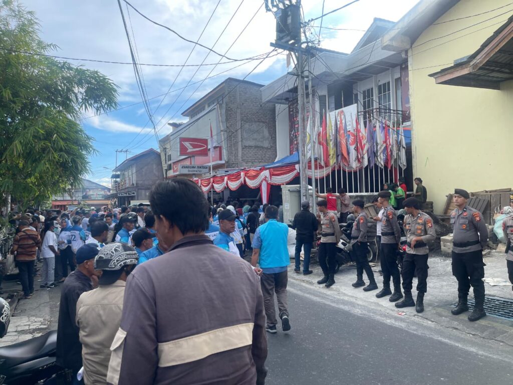 Personel pengamanan Operasi Mantap Praja disebar ke beberapa titik strategis guna memastikan tahapan kegiatan di KPU berjalan tanpa hambatan, baik dari sisi keamanan maupun ketertiban.
