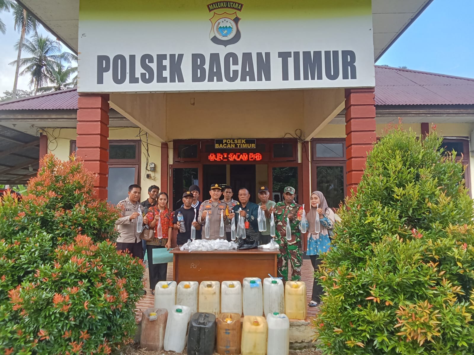 Bacan Timur – Dalam rangka menjaga keamanan dan ketertiban masyarakat, Polsek Bacan Timur bersama Babinsa Desa Sayoang, Pemerintah Kecamatan Bacan Timur, dan Pemerintah Desa Babang melaksanakan kegiatan pencegahan peredaran minuman keras (miras) di wilayah hukum Polsek Bacan Timur, Kabupaten Halmahera Selatan, pada Kamis, 16 Oktober 2025, pukul 09.00 hingga 11.30 WIT.