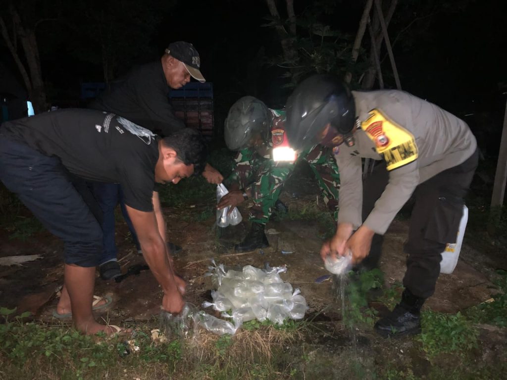 Di lokasi lain, tepatnya di kompleks Pasir Putih Desa Babang, petugas menemukan 26 kantong plastik miras jenis cap tikus yang kemudian langsung dimusnahkan di tempat.