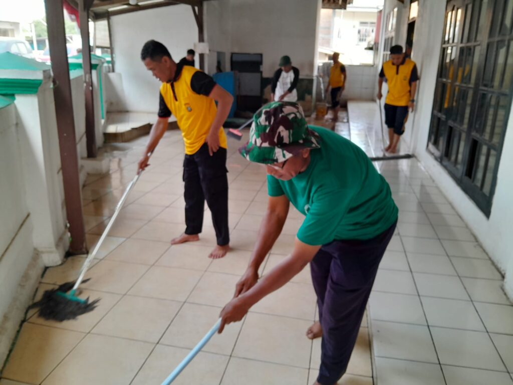 Selama kegiatan berlangsung, para personil Polsek Cikarang Pusat dan warga bersama-sama membersihkan area sekitar masjid, baik di dalam maupun di luar bangunan.