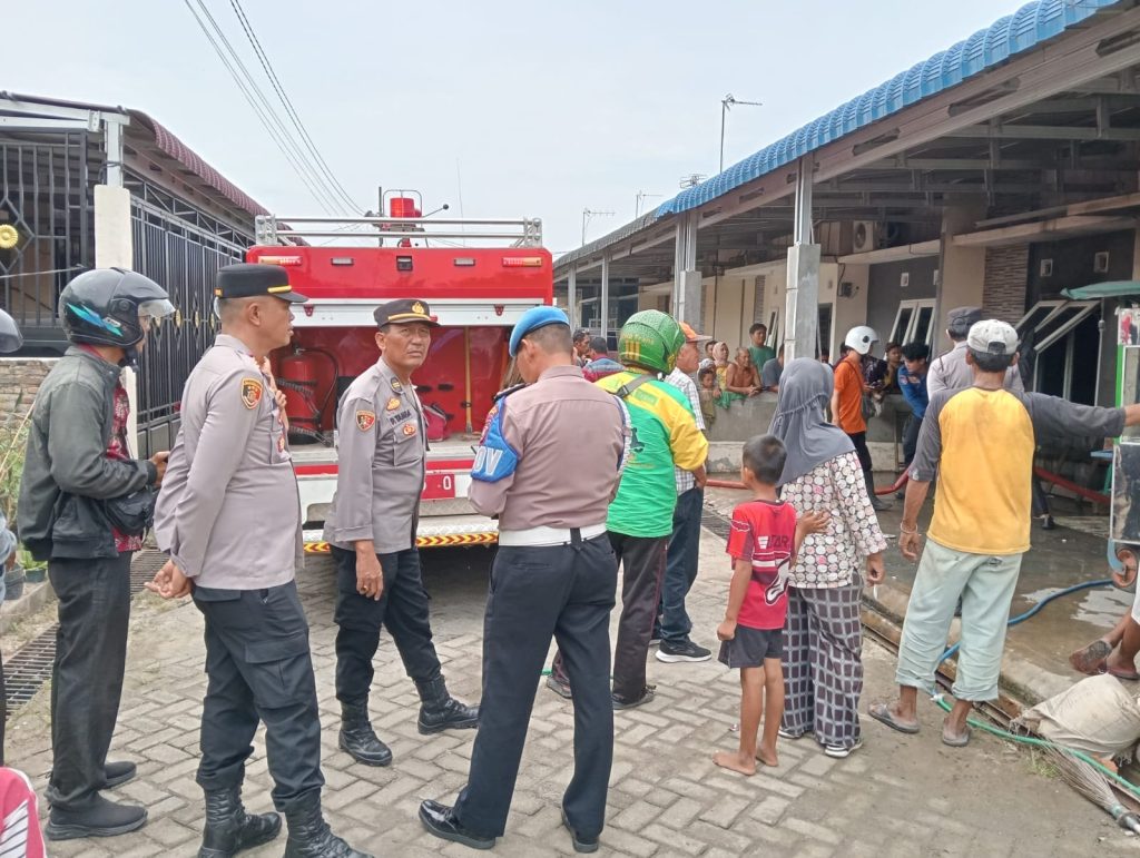 Kapolsek Indrapura AKP Jonni H. Damanik, S.H,. M.H bersama personil Polsek Indrapura mendatangi lokasi kebakaran rumah Erni Vianti (49) IRT warga Dusun II Desa II Desa Aras Kec. Air Putih.