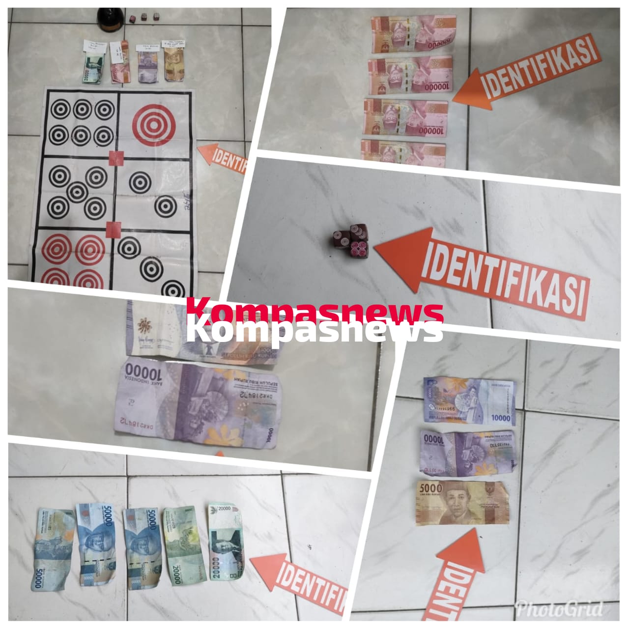 Kapolsek menuturkan barang bukti yang diamankan berupa tempurung/batok kelapa yang telah dicat warna hitam, perlak dengan gambar mata dadu yang digunakan sebagai tempat pasang taruhan, mata dadu dan Uang tunai sejumlah Rp. 735 Ribu.