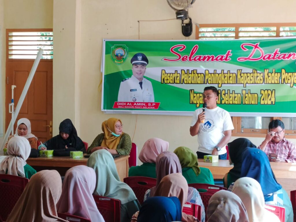 Terkait dengan pentingnya peran posyandu, untuk itulah Nagari Panti selatan dibawah kepemimpinan Didi Al Amin menggelar pelatihan kapasitas kader posyandu di aula kantor Nagari setempat, kamis 18 juli 2024.