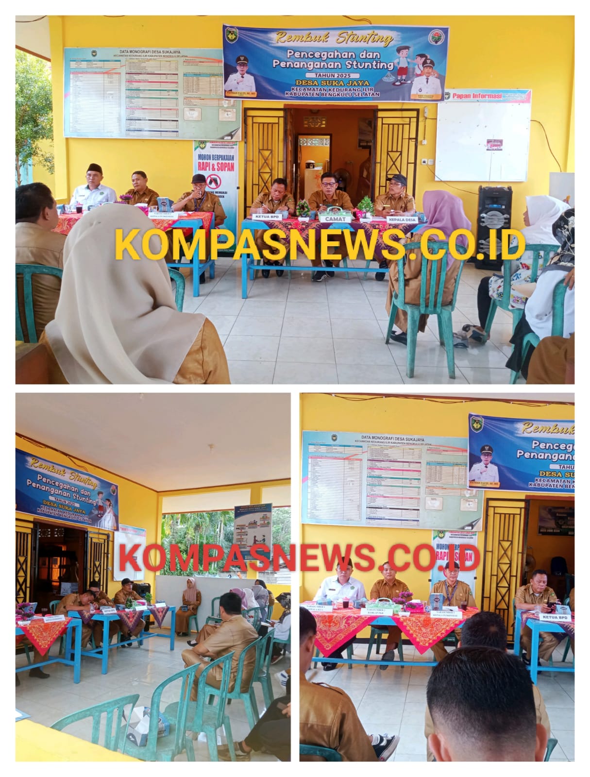 Acara rembuk stunting dilaksanakan di Balai Desa Suka Jaya pada hari Senin, 04 Agustus 2025 yang dihadiri oleh Kepala Desa bersama perangkat, Ketua BPD dan Anggota, Camat beserta rombongan, Dinas Pemerintahan Masyarakat Desa, KUA, dinas KB, Kapus diwakili KTU, babinkamtibmas, Posyandu, kader desa serta masyarakat dan unsur-unsur lainnya.