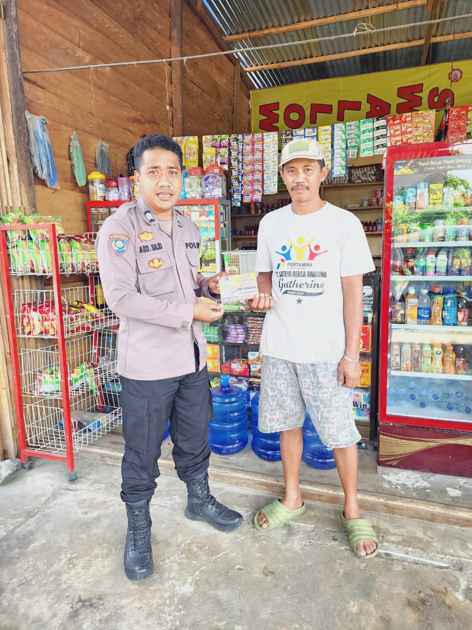 Selain mendistribusikan stiker, Brigpol Abdul Halid Taher juga memberikan sosialisasi kepada warga mengenai peran aktif masyarakat dalam menjaga keamanan dan ketertiban lingkungan.