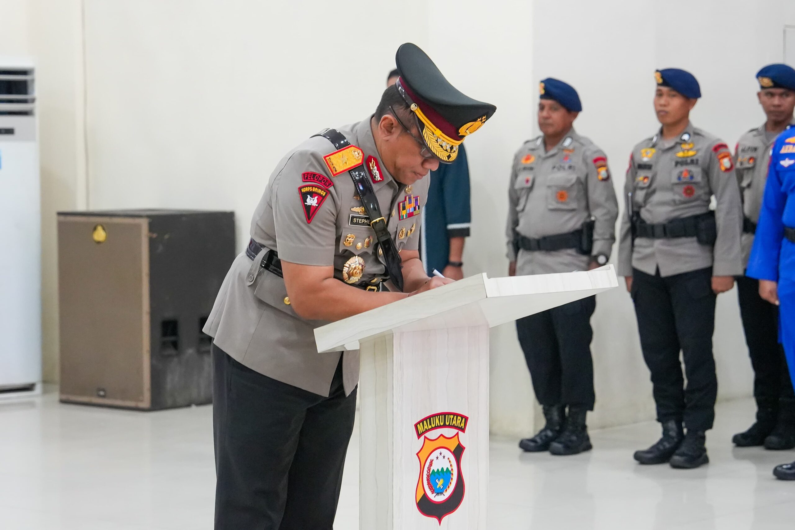 Dalam upacara tersebut, Brigjen Pol. Samudi, S.H., M.H. resmi menyerahkan jabatannya sebagai Wakapolda Malut kepada Brigjen Pol. Stephen M. Napiun, S.I.K., S.H.,M.Hum, Mutasi ini berdasarkan Surat Telegram Kapolri Nomor : ST/1554/VII/KEP/2024 Yang di keluarkan pada tanggal 26 Juli 2024.