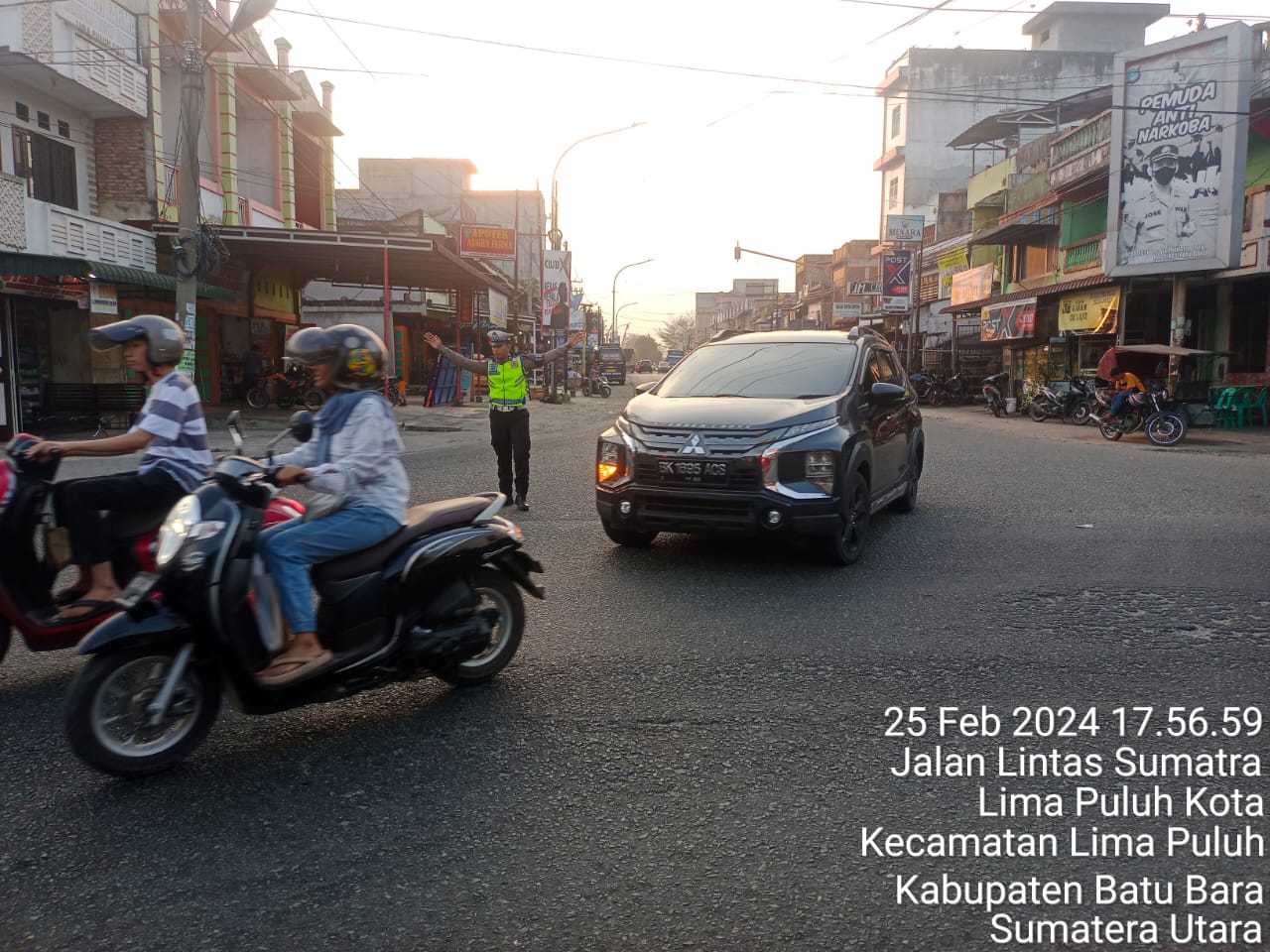 Kompasnews.co.id- Sumatera Utara, Batu Bara- Kegiatan kasat lantas bersama personil Lantas Polres Batu Bara, pada pukul 17.00 wib sampai dengan selesai, melakukan kegiatan pengaturan Lalulintas, mengantisipasi dari kemacatan jalan, dari beberapa titik rawan kemacatan, di jalinsum Indrapura Kecamatan Air Putih Kabupaten Batu Bara, Minggu, 25/02/2024.