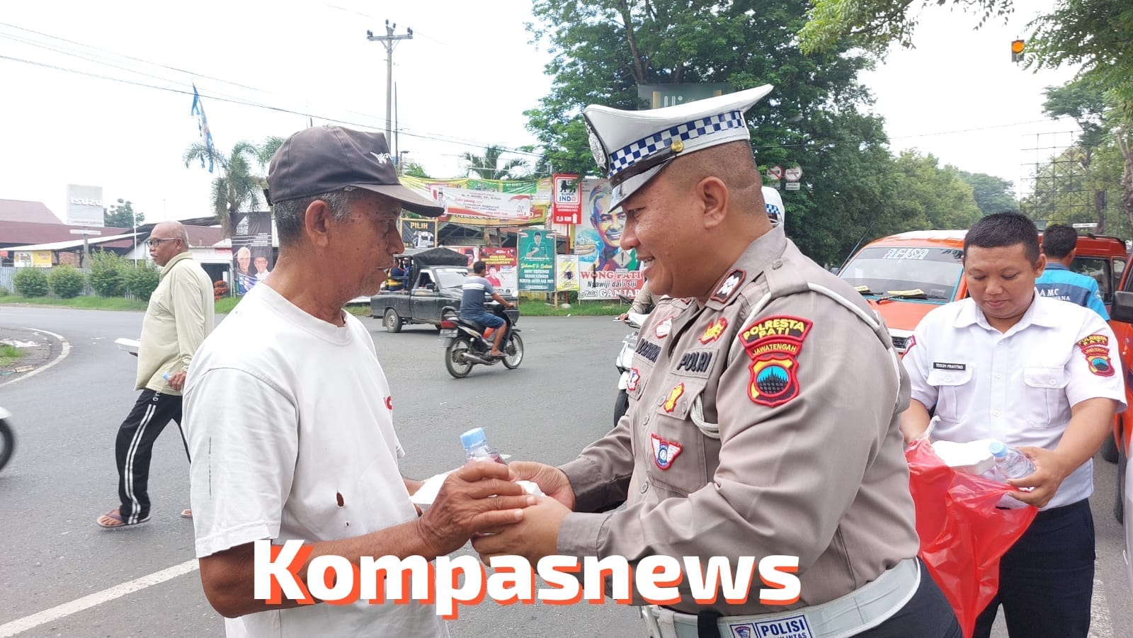 Satlantas Polresta Pati di kegiatan Jum’at berkah sering kali bagikan makanan kepada masyarakat.