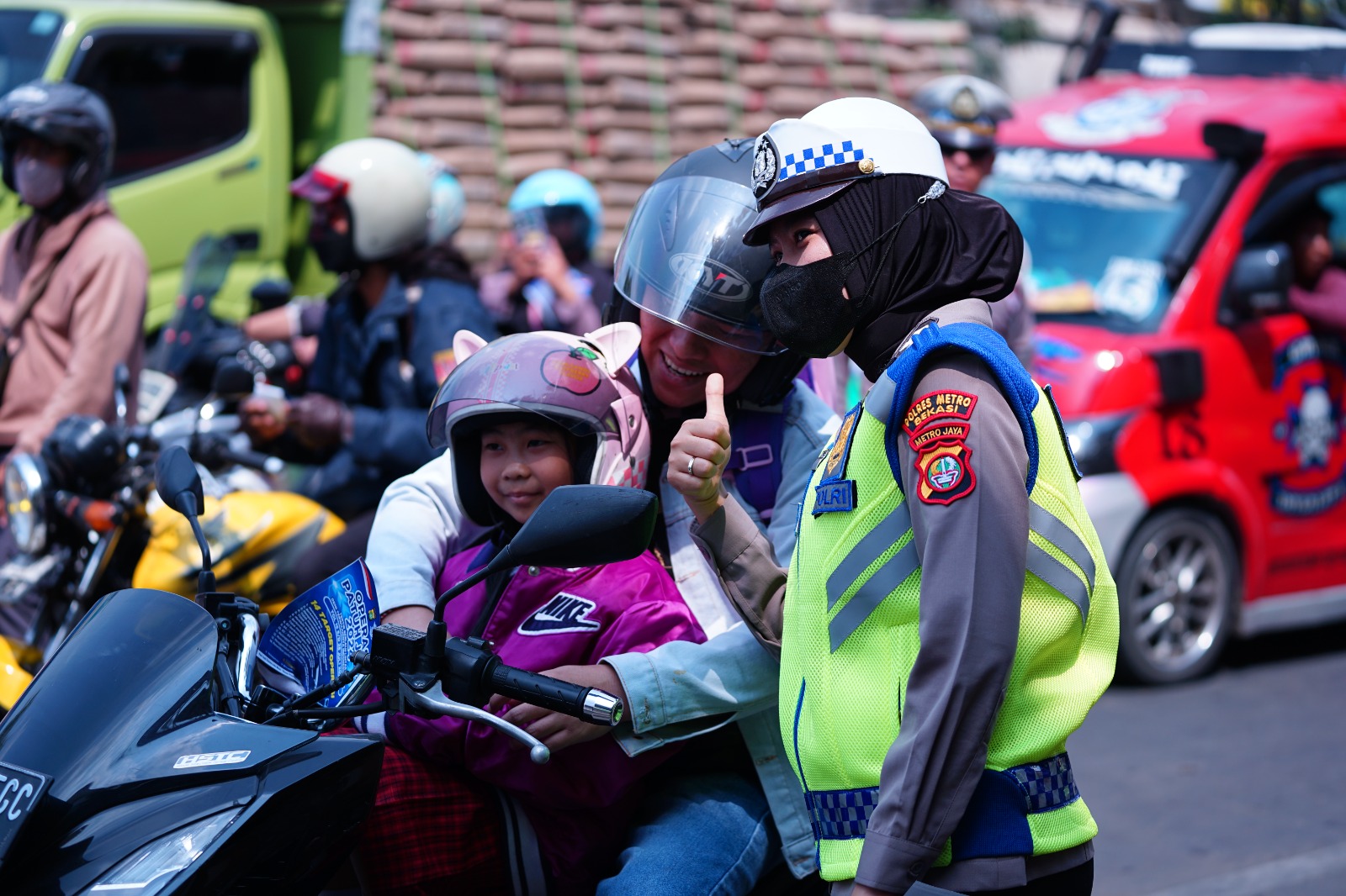 Satlantas Polrestro Bekasi juga membuat ilustrasi korban kecelakaan untuk menekankan dampak nyata dari kecelakaan lalu lintas. Atribut pocong yang digunakan menarik perhatian para pengendara dan masyarakat, menjadikan pesan keselamatan lalu lintas lebih mudah diingat dan dipahami.