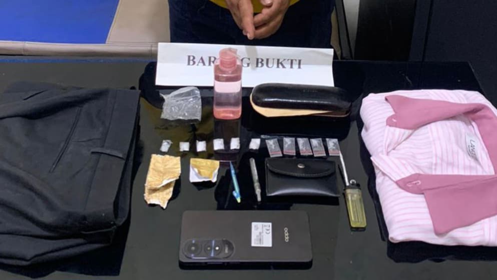 Dalam penggeledahan di lokasi kejadian, petugas berhasil mengamankan sejumlah barang bukti dari tangan pelaku yang diantaranya 11 paket sabu siap edar dalam berbagai bungkus, satu kaca pirek berisi sabu, satu korek api gas yang telah dimodifikasi, satu unit smartphone, dompet, pakaian, serta sebuah bong cantik hasil karya seni pelaku.