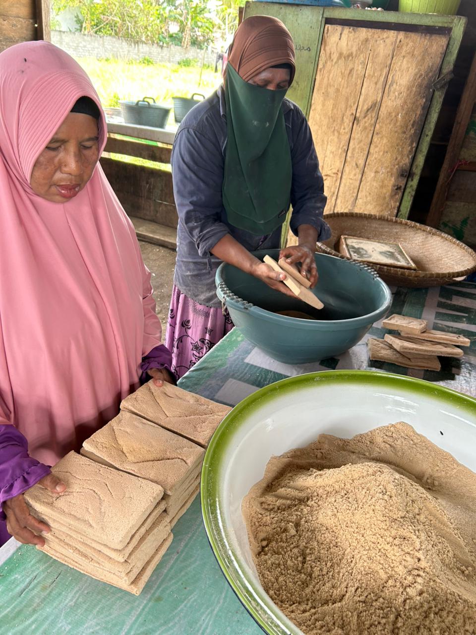 Namun UMKM ini tetap bertahan dan telah berjalan selama satu tahun berkat dedikasi tim, termasuk Ibu Juhriah Ramalan yang bertugas membakar sagu sekaligus memasak untuk pondok, UMKM ini terus berkembang.