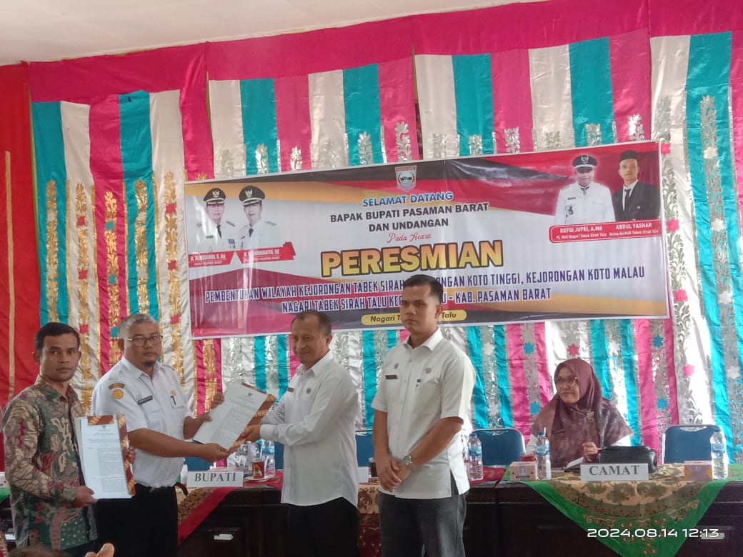 Pasbar kompasnews.co.id Pada Acara Peresmian Pembentukan Wilayah Kejorongan Tabek Sirah, Kejorongan Koto Tinggi, Kejorongan Koto Malau, Di Nagari Tabek Sirah Talu, Kecamatan Talamau, Kabupaten Pasaman Barat.