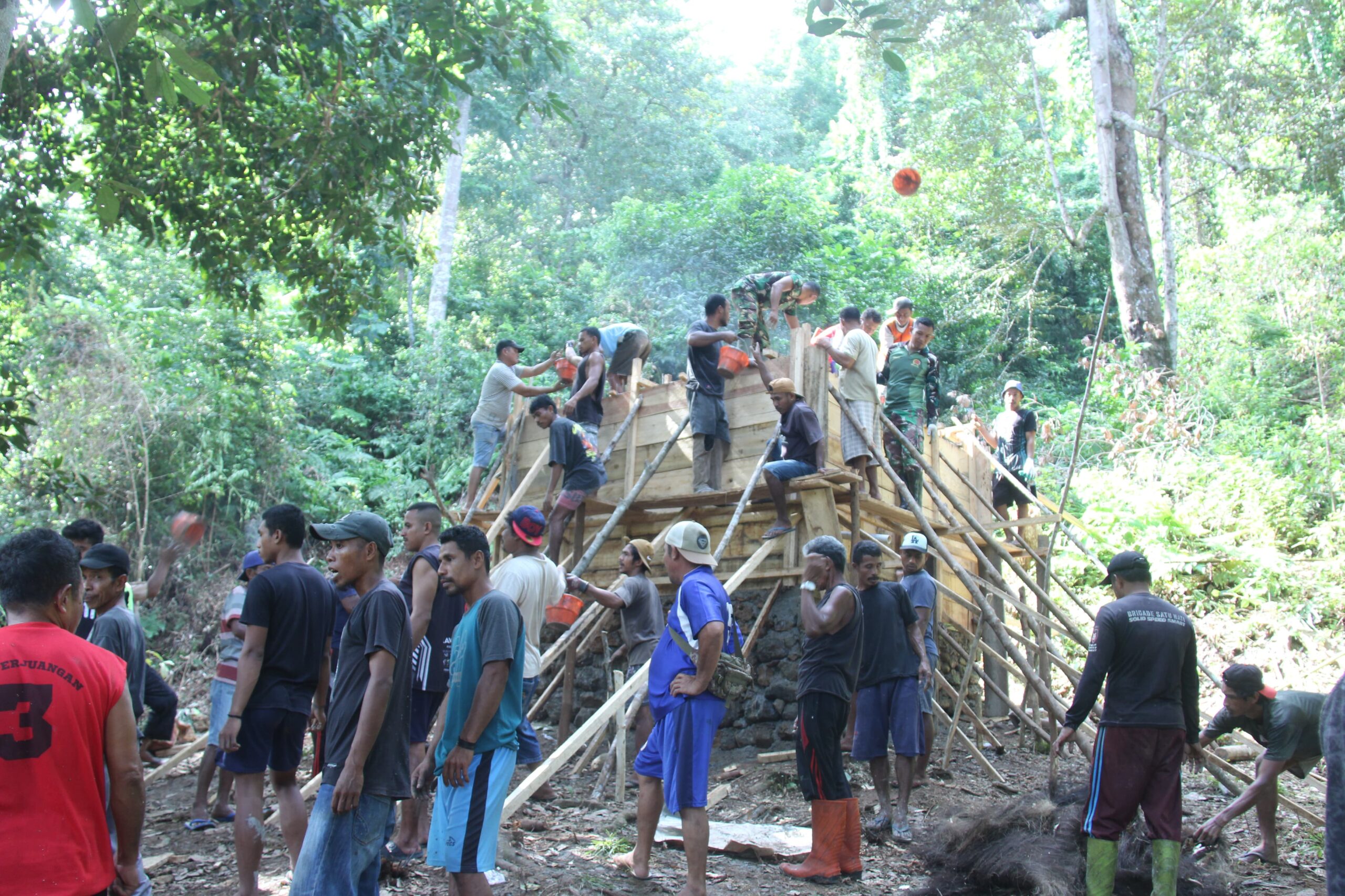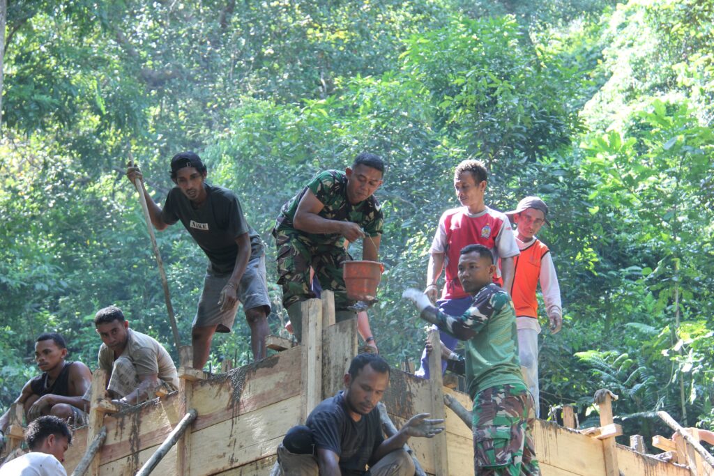 Kegiatan pengecoran bak air melibatkan kolaborasi antara TNI dan masyarakat. Warga Desa Malbufa bekerja berdampingan dengan prajurit TNI, saling membantu mulai dari persiapan bahan hingga pengecoran. Meskipun pekerjaan ini tidak mudah, semangat gotong royong dan kebersamaan mengiringi setiap langkah mereka.