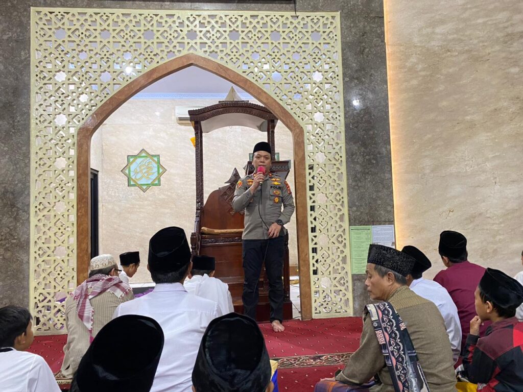 Tangerang – 18 Maret 2024 – Dalam rangka memperkuat kesadaran akan keamanan dan ketertiban masyarakat (kamtibmas) selama bulan suci Ramadhan, Kasat Reserse Kriminal (Kasat Reskrim) Polresta Tangerang aktif menyampaikan pesan-pesan kamtibmas kepada jamaah yang berkumpul untuk melaksanakan ibadah shalat tarawih di Masjid Jami Al-Falah, Kecamatan Balaraja, Kabupaten Tangerang, Provinsi Banten.