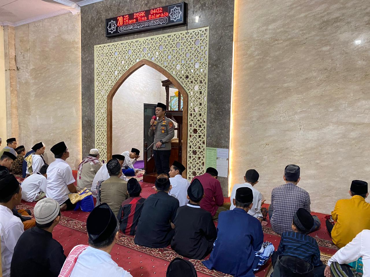 Tangerang – 18 Maret 2024 – Dalam rangka memperkuat kesadaran akan keamanan dan ketertiban masyarakat (kamtibmas) selama bulan suci Ramadhan, Kasat Reserse Kriminal (Kasat Reskrim) Polresta Tangerang aktif menyampaikan pesan-pesan kamtibmas kepada jamaah yang berkumpul untuk melaksanakan ibadah shalat tarawih di Masjid Jami Al-Falah, Kecamatan Balaraja, Kabupaten Tangerang, Provinsi Banten.