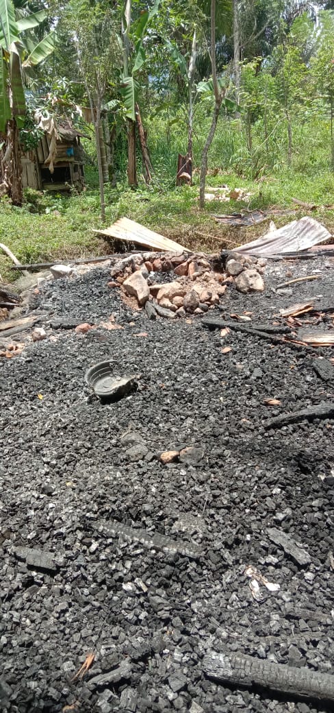 Akhirnya telah rata dengan tanah dilahap sijago merah, api diperkirakan bersumber dari bara sisa sisa pembakaran kayu sewaktu membuat gula aren.