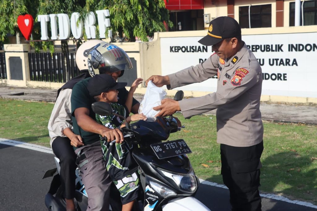 Dalam semangat Ramadan, Kepolisian Resor Kota (Polresta) Tidore berkolaborasi dengan Bhayangkari, Komite Nasional Pemuda Indonesia (KNPI), dan Badan Eksekutif Mahasiswa (BEM) Sekolah Tinggi Ilmu Manajemen dan Ilmu Komputer (STIMIK) Tidore Mandiri menggelar aksi sosial pembagian takjil di depan Mapolresta Tidore (2/3) kemarin.