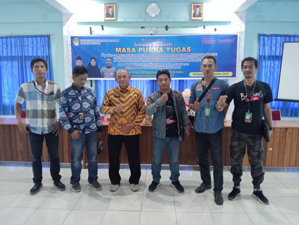 Ketapang, Kalimantan Barat. — Dalam suasana penuh kehangatan dan haru mewarnai acara purna tugas tiga sosok penting di lingkungan Dinas Ketahanan Pangan dan Perikanan (DKPDP) Kabupaten Ketapang, yakni Bapak Ir. Adi Mulia, M.Hut (Kepala Dinas), Ibu Herawati Meliani (Staf Dinas), dan Bapak Mohri (Staf Dinas). Acara penghargaan atas pengabdian mereka digelar di aula DKPDP Ketapang pada sore jum”at 31 oktober 2025 dengan dihadiri oleh para pegawai, rekan kerja, serta tamu undangan,serta rekan-rekan media turut hadir dalam kesempatan yang sangat berharga tersebut.