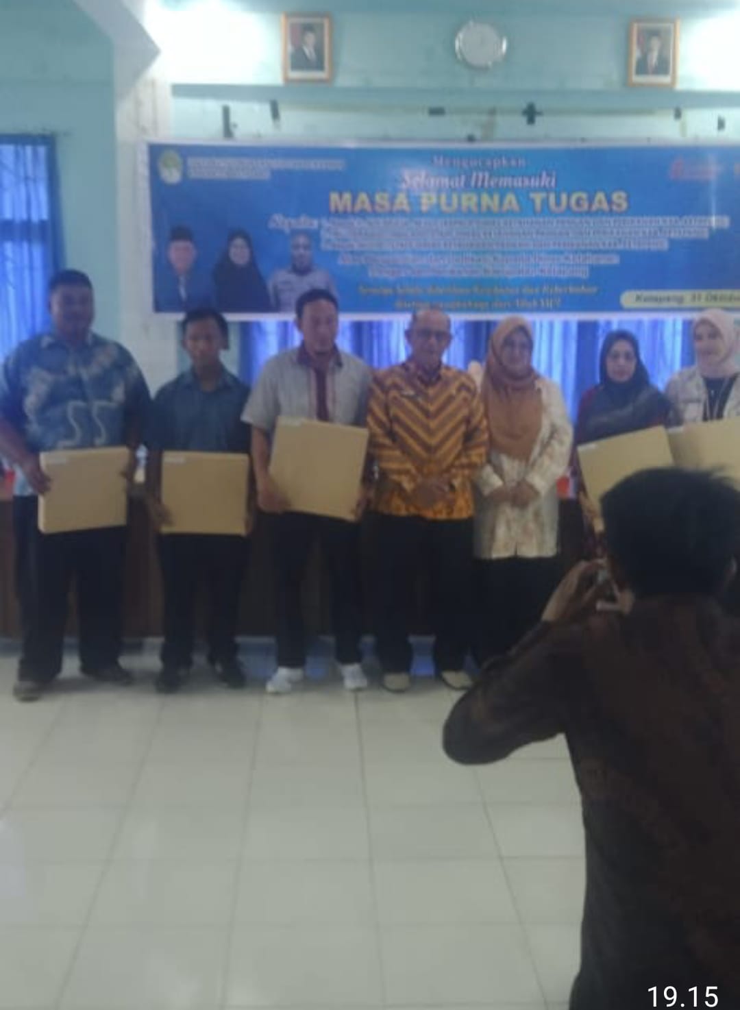 Acara diakhiri dengan sesi foto bersama dan penyerahan kenang-kenangan sebagai bentuk penghargaan atas dedikasi para purna tugas.