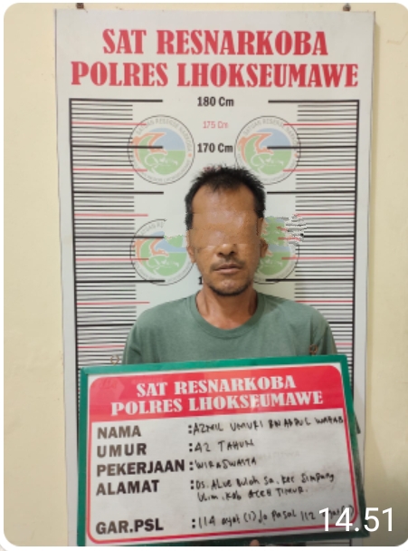 Terduga pelaku yang ditangkap adalah AU (42 tahun) wiraswasta, warga Aceh timur yang berhasil ditangkap Polisi di kawasan Desa Meunasah Mee, Kecamatan Muara Dua, Kota Lhokseumawe.