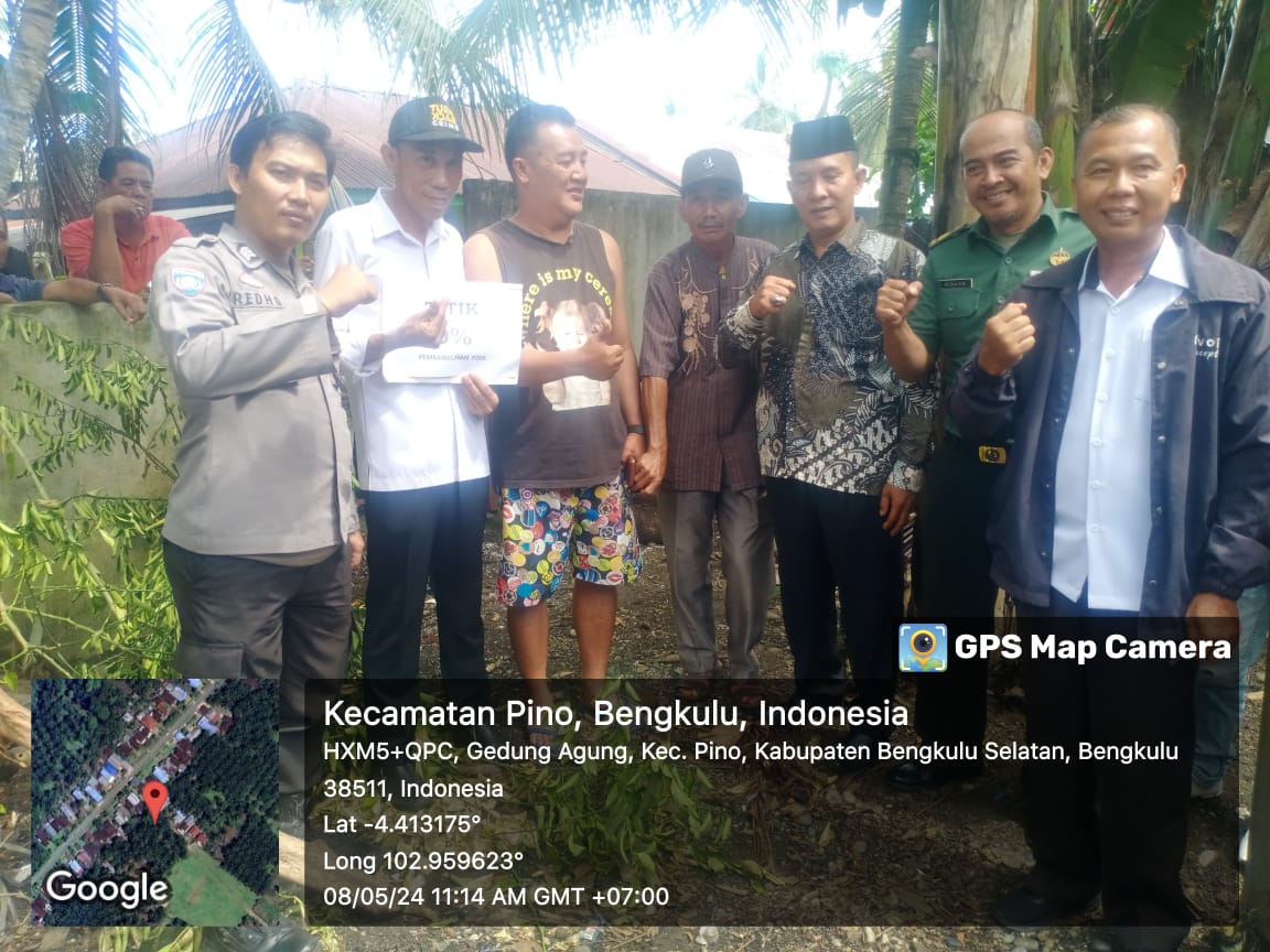 Dalam kesempatan itu kades Gedung Agung Manadi bersama peserta yang hadir di lokasi lansung photo untuk dokumentasi sebagai tanda dimulainya pembangunan pelaksanaan pemasangan tiang listrik desa.