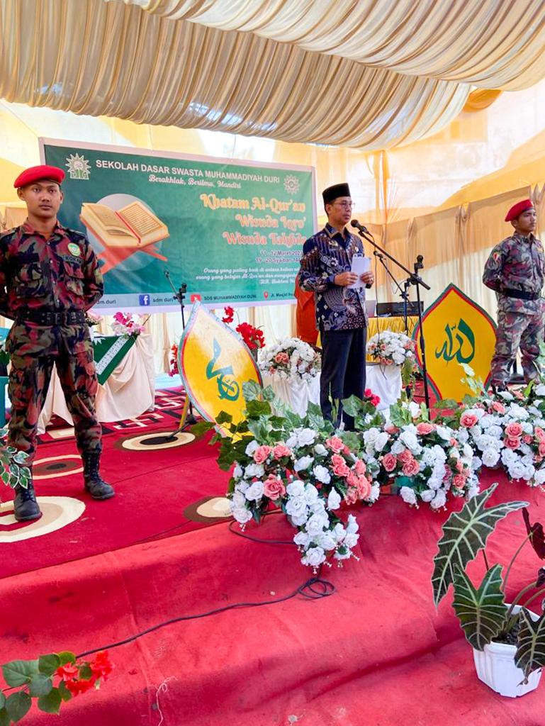 Asisten Perekonomian dan Pembangunan Sekretariat Daerah Kabupaten Bengkalis Toharudin saat menghadiri pelaksanaan Khatam Al-Qur’an, wisuda Iqra’ dan wisuda Tahfidz ke-9 Sekolah Dasar Swasta (SDS) Muhammadiyah Duri.
