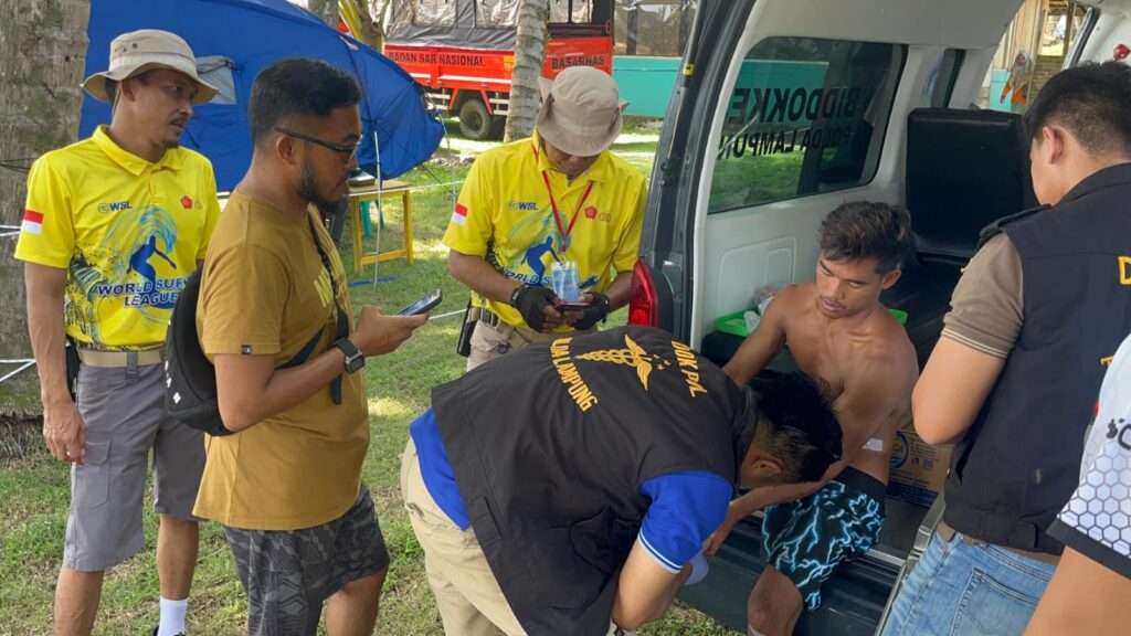 Tourist Police Polres Pesisir Barat kembali menunjukkan respon cepat dan profesional dalam menangani insiden yang melibatkan atlit. Kamis pagi tadi, mereka berhasil memberikan pertolongan pertama dan mengantarkan atlit surfing asal Indonesia, Izrel Sababat, ke bagian kesehatan Bid Dokkes Polda Lampung.