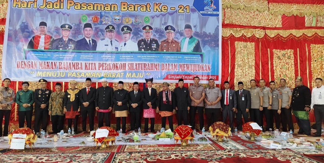 Setelah menghadiri Rapat Paripurna Istimewa Dewan Perwakilan Rakyat Daerah (DPRD) dalam rangka Peringatan Hari Jadi ke-21 Kabupaten Pasaman Barat Tahun 2025 di Kantor DPRD setempat pada Selasa (7/1), rombongan Pemerintah Daerah Pasaman Barat, Forkopimda dan tamu yang hadir lainnya melanjutkan agenda Tradisi Makan Bajamba di Balerong Pusako Anak Nagari Pasaman Barat.