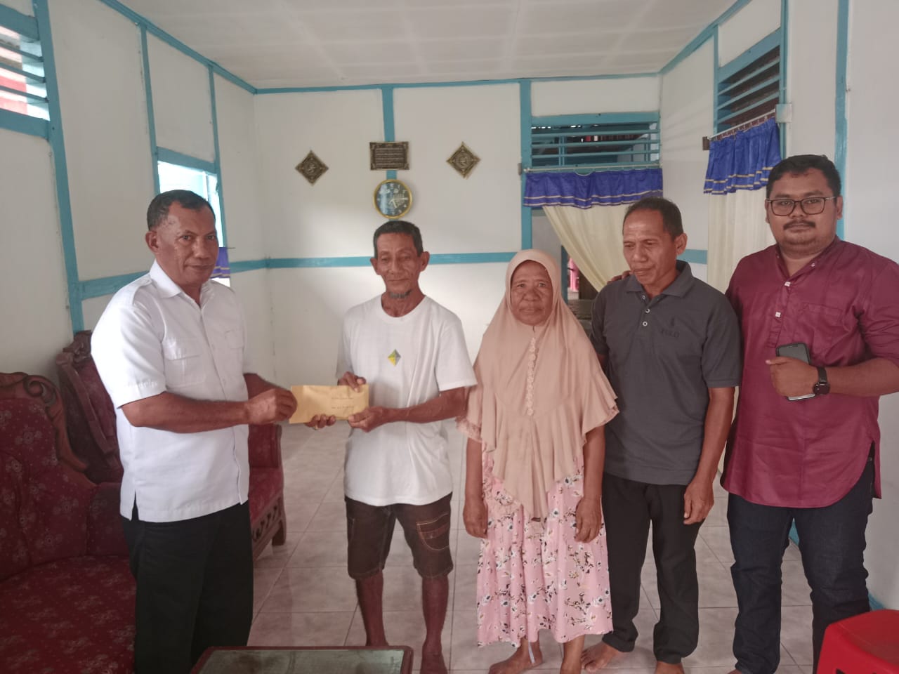 Bapak Daut,bapak nyong dan ibu Ela menambhakan yang turut hadir menejer P.T. sinergi bapak Muhamad fitrah, dan yang menerima sumbang perwakilan pihak korban adalah bapak Latif Malofo ,” tutupnya.