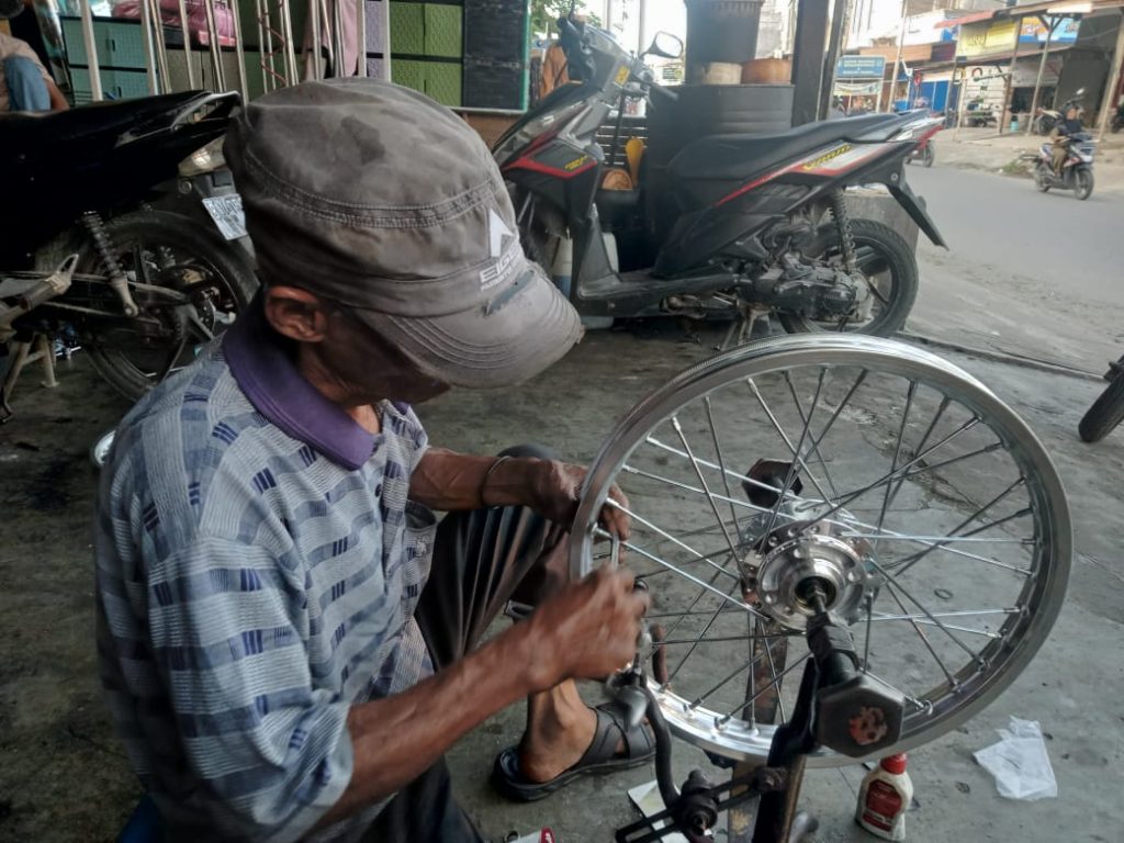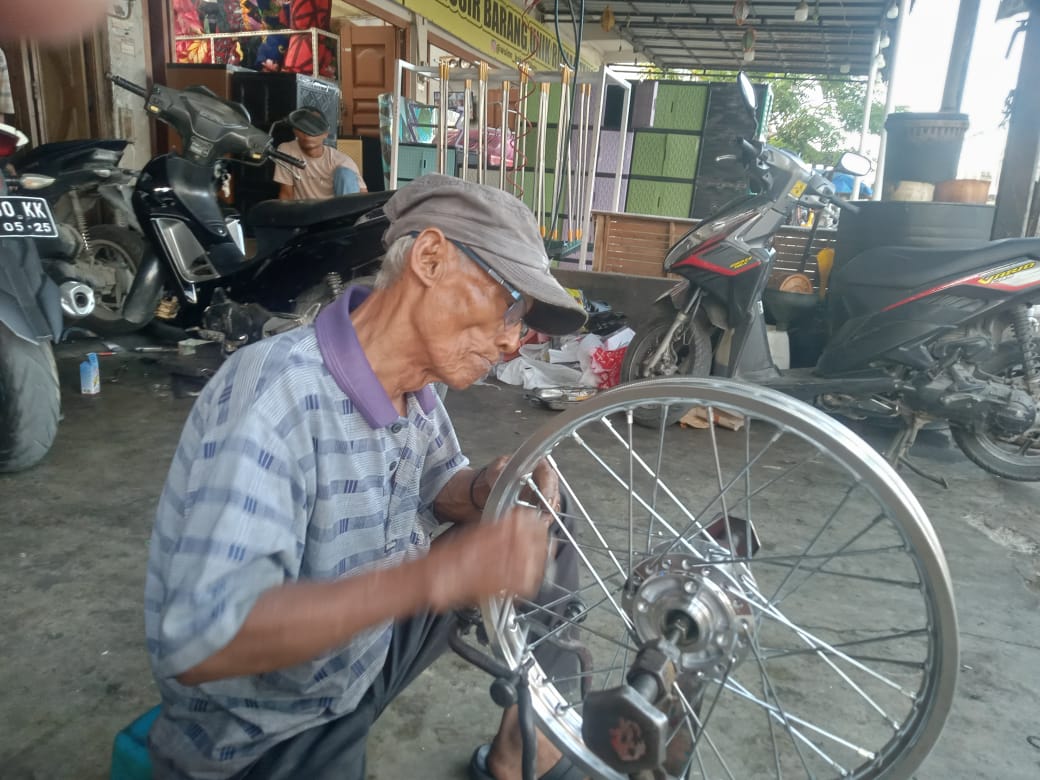 Aceh, Kompasnews.co.id – Usia senja tak menyurutkan semangat Subono, yang akrab disapa Wak Yong, untuk terus bekerja demi menghidupi keluarganya. Pria berusia 87 tahun ini sehari-hari bekerja sebagai tukang stel jari-jari sepeda motor dan sepeda ontel di pinggiran Kota Lhokseumawe, Aceh.
