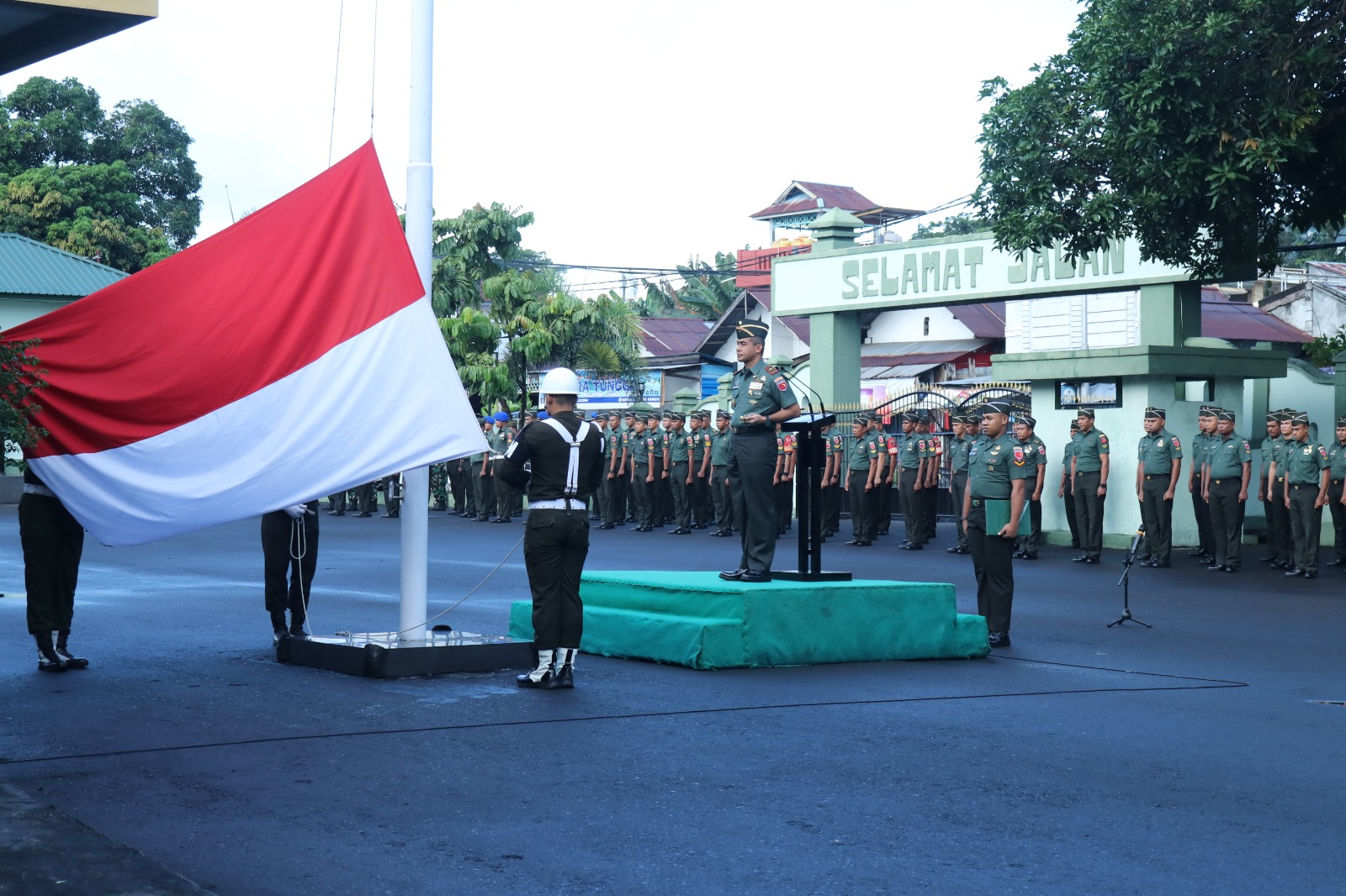 Upacara ini dipimpin langsung oleh Danrem 152/Baabullah Brigjen TNI Enoh Solehudin, S.E., dan diikuti oleh Kasrem 152/Baabullah, para Pejabat Utama (PJU) Korem, para Kepala Balak Aju Rem, serta seluruh Perwira, Bintara,Tamtama dan Pns TNI di lingkungan Korem 152/Baabullah.