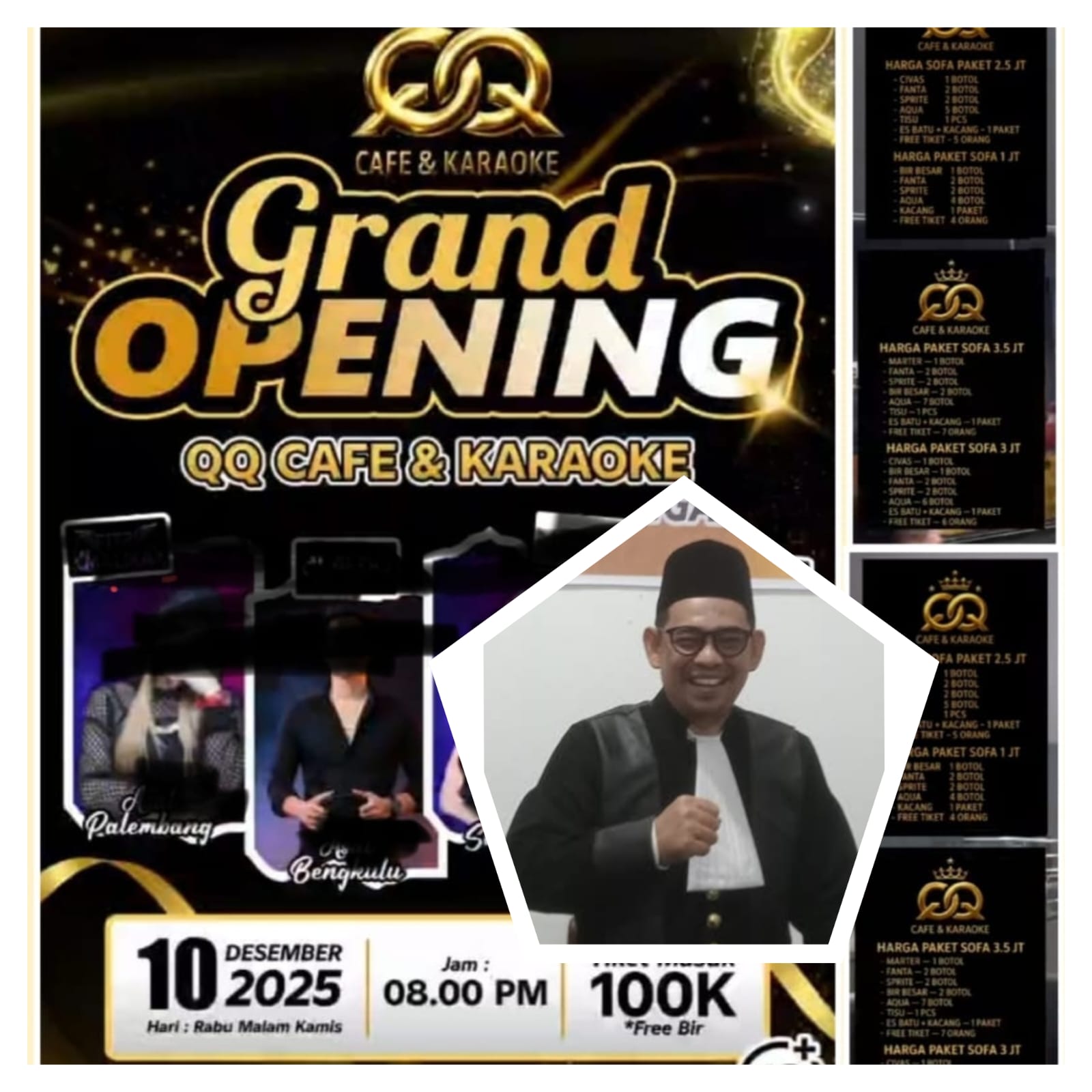 Lubuk Linggau – viralnya pemberitaan Grand openning Cafe QQ dan Karaoke yang akan di selenggarakan pada hari Rabu malam Kamis tanggal 10 Desember 2025 yang menuai penolakan dari berbagai kalangan baik itu organisasi kepemudaan dan tokoh agama yang diduga menjadi tempat maksiat kini Praktisi hukum ADV Bahet Edi Kuswoyo, S.P., S.H., M.H angkat bicara.(10/12/2025)